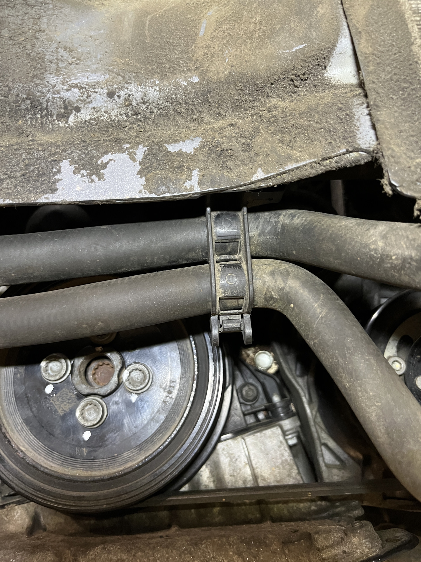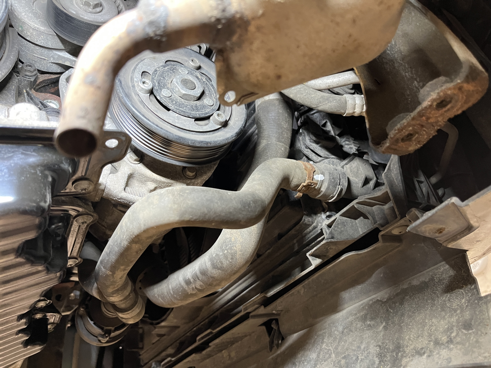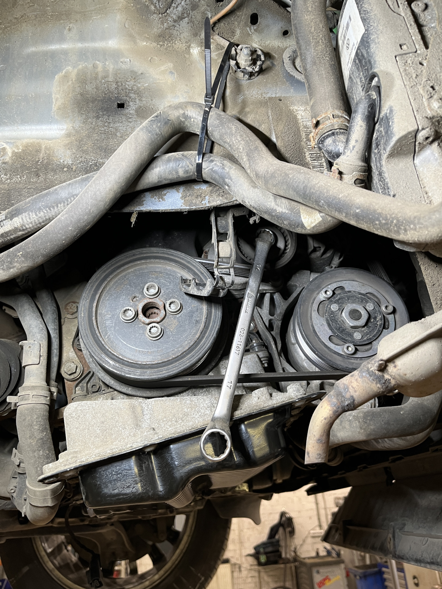 Ну тогда тут о большей части того что Вы написали можно также сказать. Тосол слили, приводной сняли (домкрата не видно), Перешли на верх, освобождаем пространство, откручиваем опору — Вытягиваем резьбу