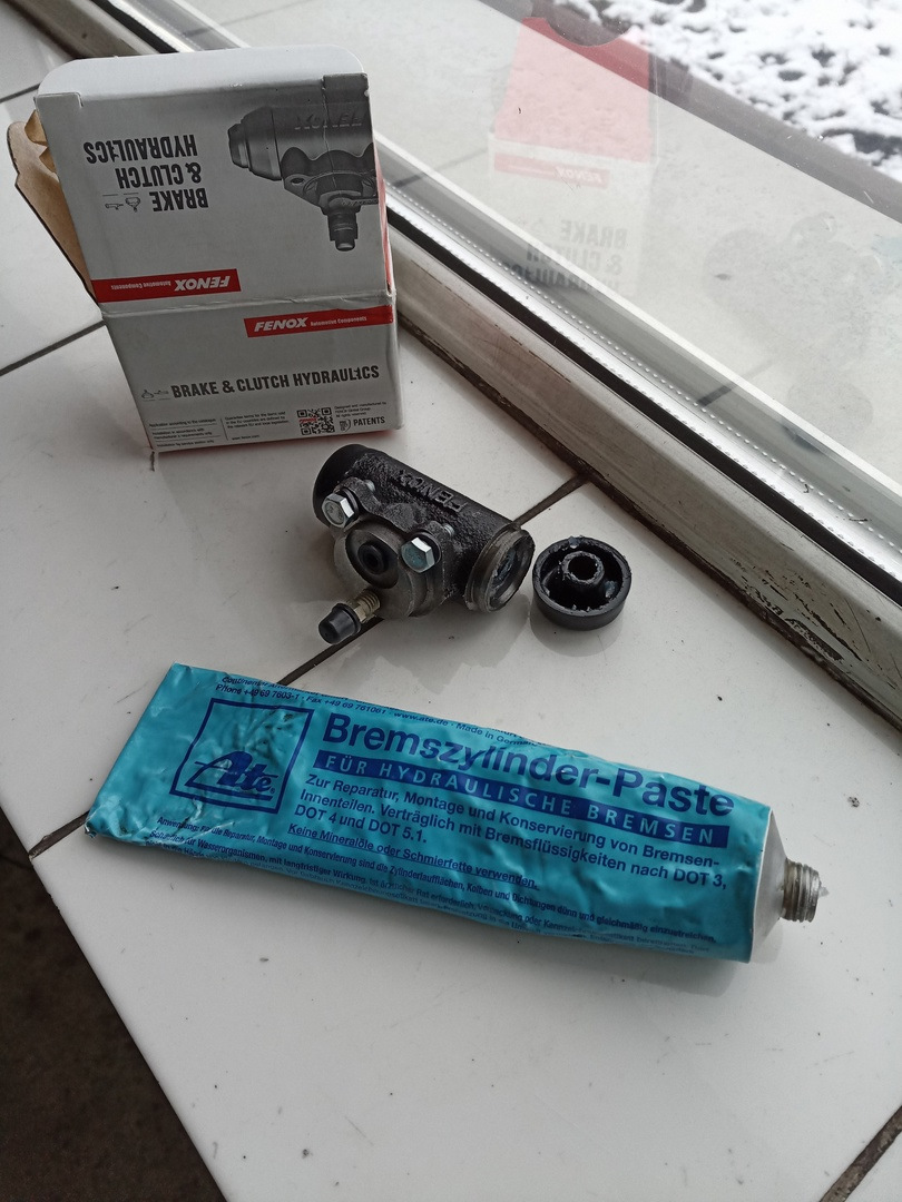 Сзади под замену пошли цилиндры(Fenox), которые помазал смазкой, колодки Transmaster, тормозные шланги ДААЗ от Шнивы передние.Барабаны в хорошем состоянии, ступичные подшибосы тоже.