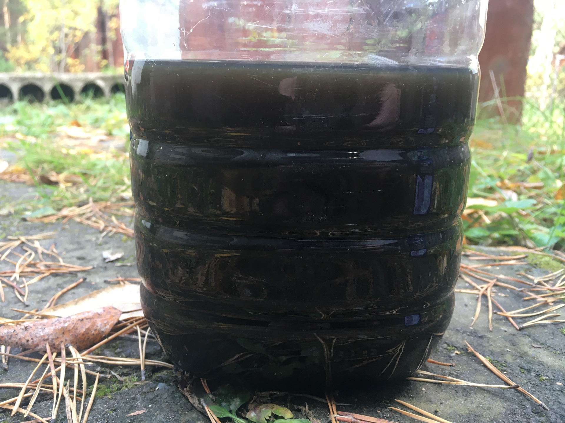 Из поддона вылилось еще жижи. Итого общий объем слитого — примерно 4,2 литра.
