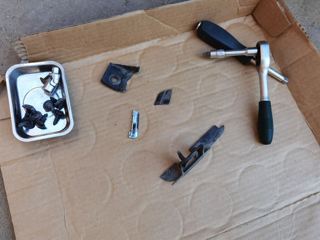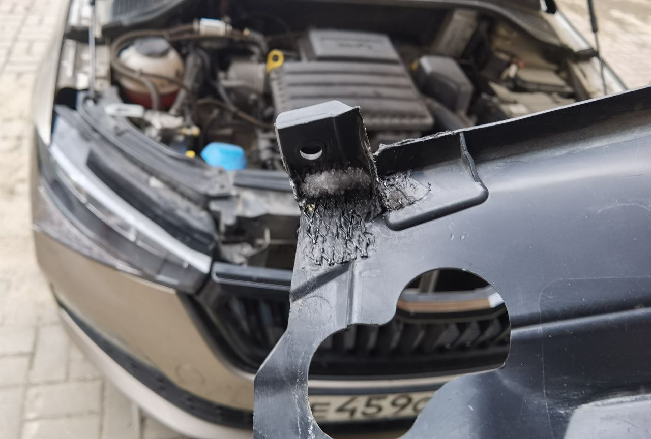 Так же вставил кусок сетки в верхнюю решетку, закрепил все стяжками, чтобы сделать без стяжек надо снимать всю. решетку и бампер чего делать не хотелось. Нашел от куда отвалился кусок крепления, залечил.