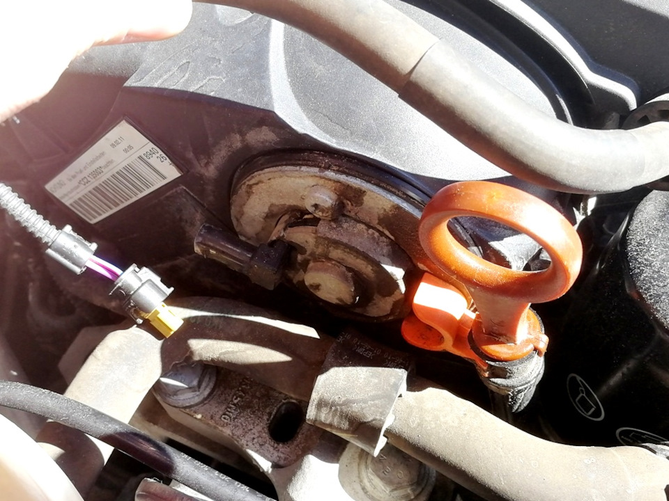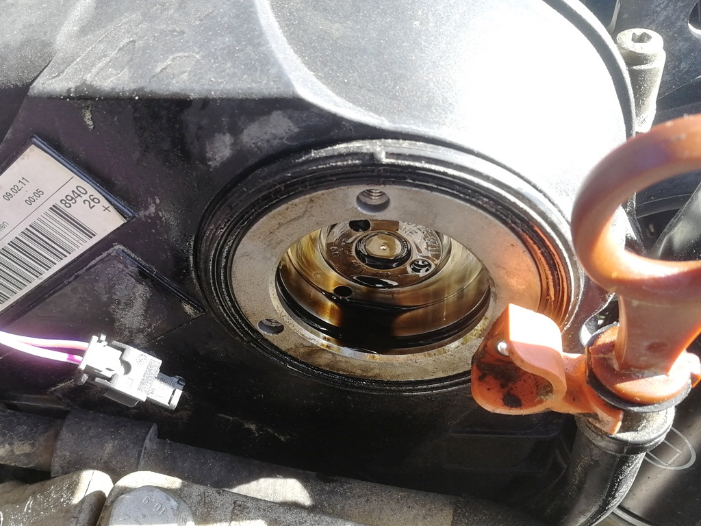 При весенней мойке двигателя было обнаружено запотевание электромагнитного регулятора фаз ГРМ (или, как его еще называют – электромагнитный клапан ГРМ).