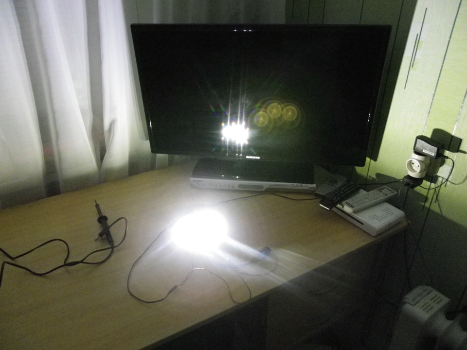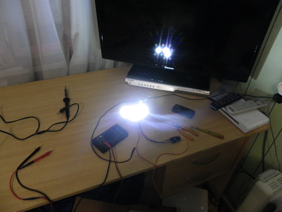 Собрал плафон не на 4х диодах, а на трёх… Ребята — это жесть ! ) Освещают всю комнату ночью как ксенон ! И это на 6ти вольтах (рассчитаны от 6 до 8 вольт, ток 600 мА, у меня на 6ти вольтах вышло 450мА. Буду надеяться что жить будут долго… Собирал всё на 3мм алюминиевой пластине с двумя подкладками из 10мм алюминия и симметричной пластине из 3мм алюминия… Получилось как бы 2 плоских симметричных радиатора (на одном снаружи светодиоды, а другой стоит изнутри через 10мм проставки) Всё собрано через термопасту . Диоды паял на подложки, еле всё в плафон влезло. Короче испытав всё дома ночью, с выключенным светом, а потом и монитором компьютера — в машине поставил на 5.8 Вольт, но кажется тусклее не стало ))) По фото видно что на улице кроме багажника освещают ещё и подступы к машине) В первый же вечер компания молодых людей проходившая мимо поинтересовалась — что за лампочки у меня стоят ) Пришлось дать им облазить багажник )))