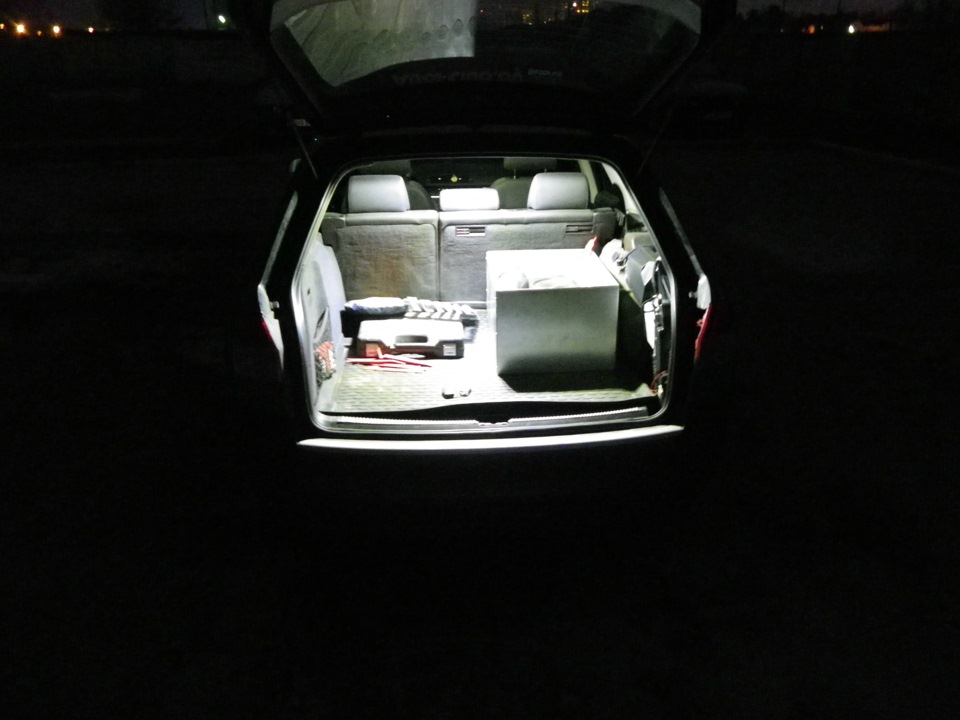 Хех, я немного не так сделал. У меня в крышке багажника была шторка штатная. Т.к. ни разу ей не пользовался — вынул саму шторку и на ее место приклеим ленту метровую. Светит так же, только еще улицу освещает )