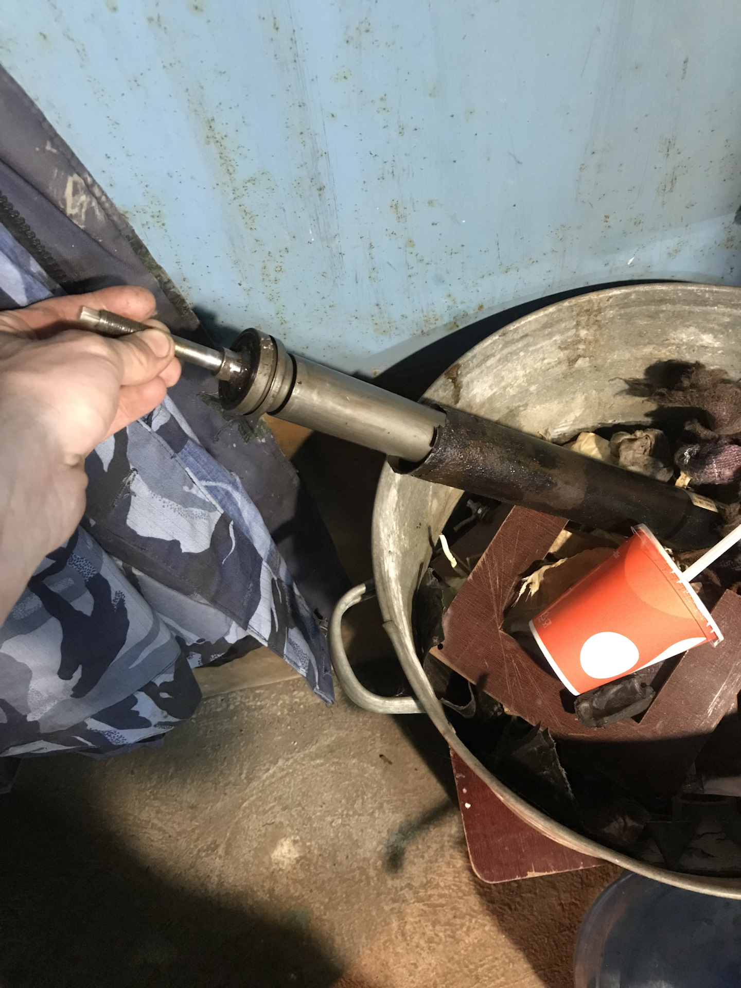 Открутил все болты и гайки, снял аморт и ох.ел ужаснулся. Под пыльником в верхней части он просто сгнил и развалился на 2 части прям в руках