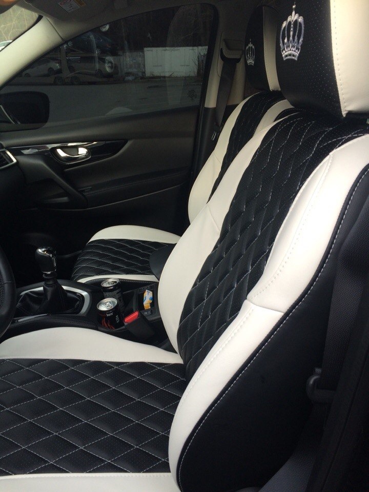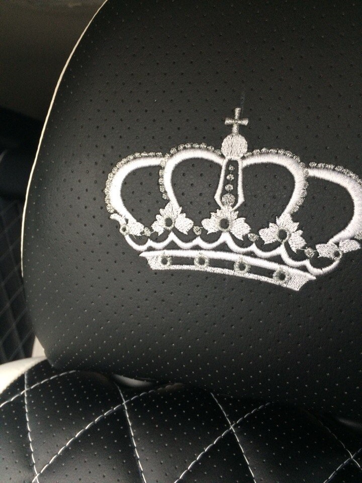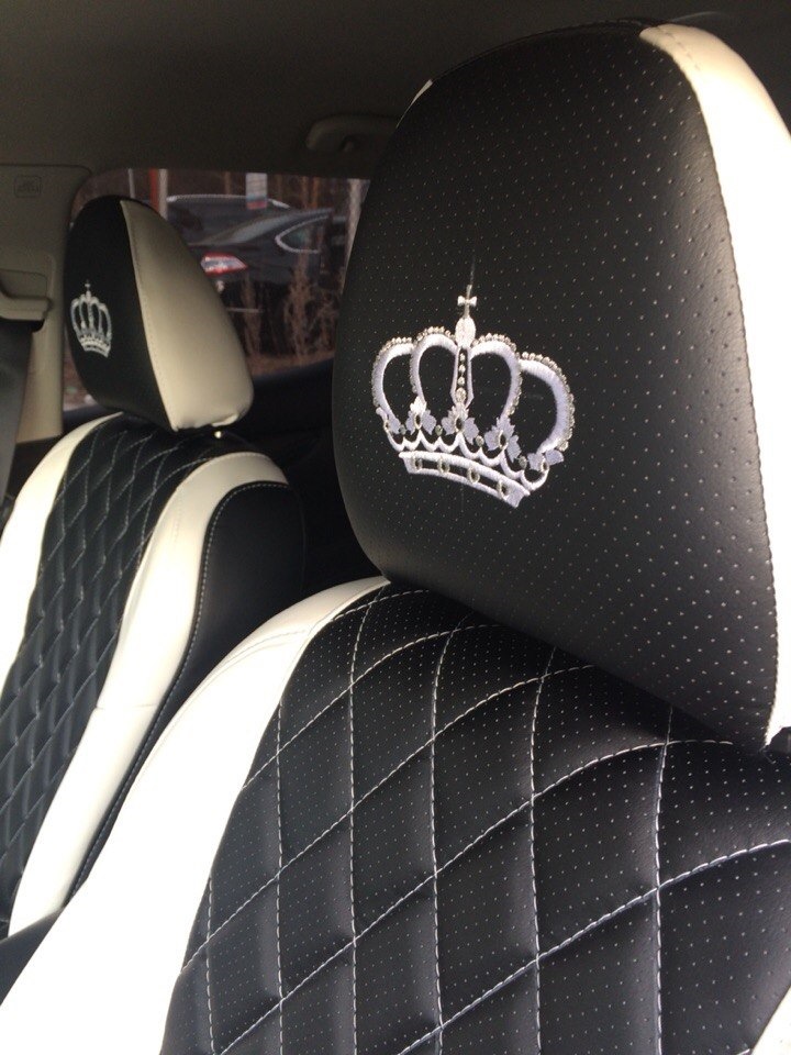 Он же экстраординарный, поэтому решением было вышить короны. Теперь, у меня по-королевски Коронованный Кашкай, действительно необычный, с персональным дизайном салона, а пассажиры, которые ездят на передних сидениях смогут почувствовать себя королём и королевой :)