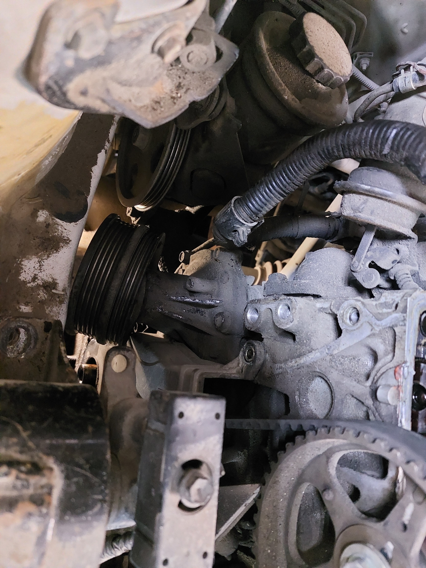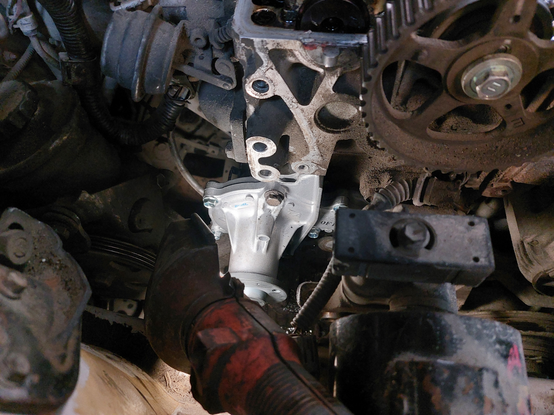 Вовремя помпа родная накрылась стали все снимать не тока помпе кирдык пришел(самое интересное не бежала я еще на ней гремящей ездил около 500 км пока ждал запчасти) и ремню ГРМ и ролику патрубку😁