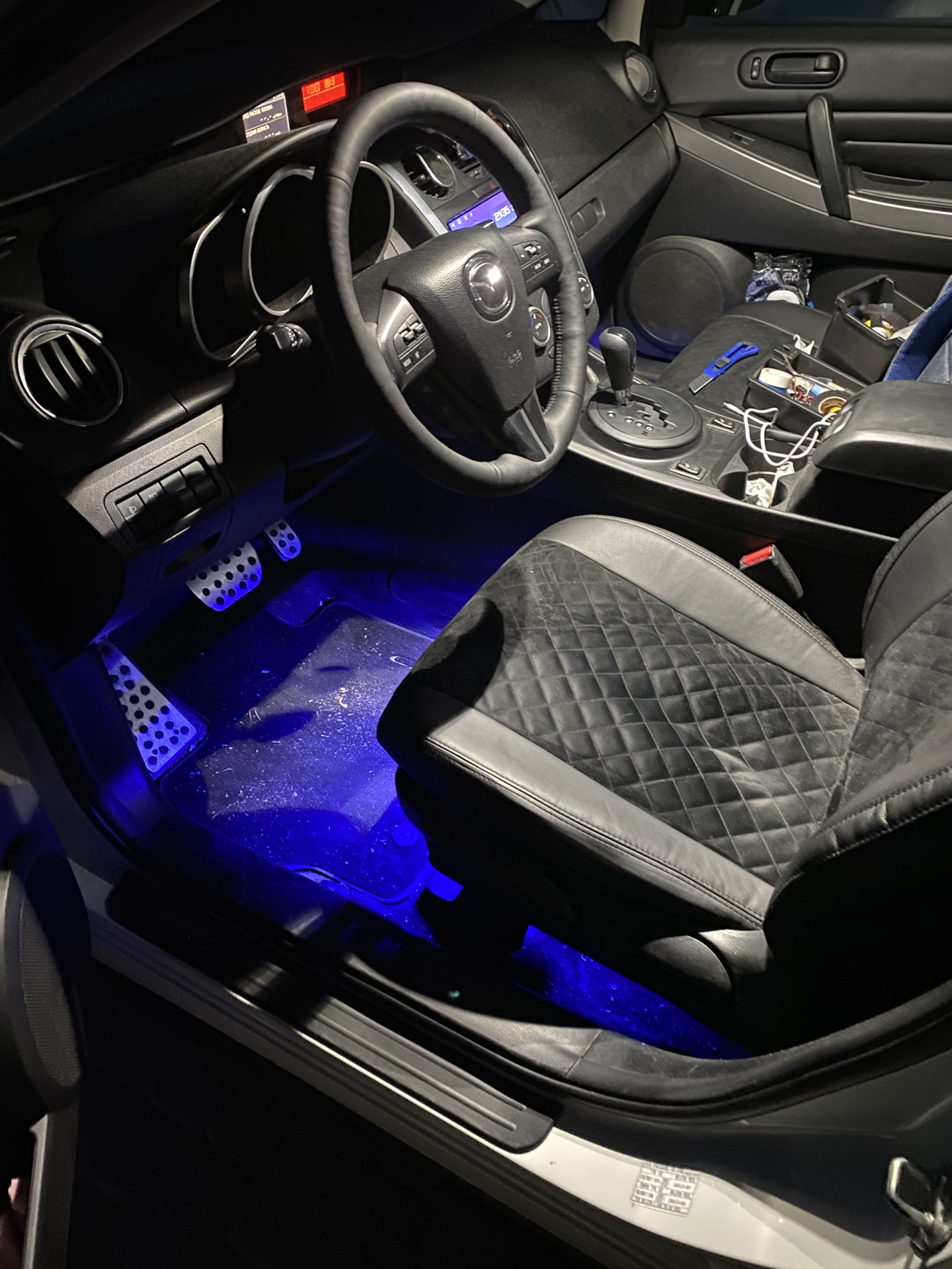 Всем привет, сегодня запилил подсветку в ноги, лента светодиодная, провод тянул от заднего плафона, функционал подсветки такой же 3 режима как и на плафоне, закрепил под сиденья на скотч, там как раз паз есть под ширину ленты,