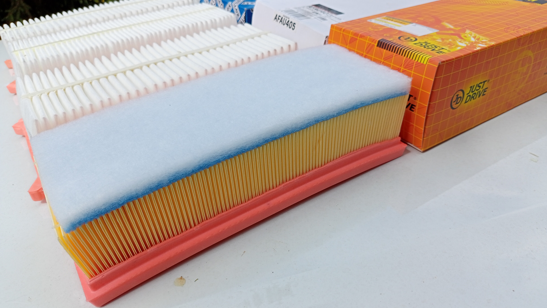 По форме и фильтрующему элементу ближе всех к оригиналу Miles. Хотя такое ощущение, что фильтрующий элемент у него немного менее плотный.Stellox — ну очень плотный фильтрующий элемент. Еле палец просунул. Думаю, что это не совсем айс для мотораУ Just Drive хоть сам фильтрующий элемент хоть и немного тоньше, но есть дополнительный фильтр (не знаю как он там правильно называется), вдобавок он еще и 2-х слойный… В том, что площадь фильтрующего элемента немного меньше оригинального, думаю, ничего страшного и криминального нет. У меня сейчас стоит такой же по форме, пока никто не умер…вот этот самый…