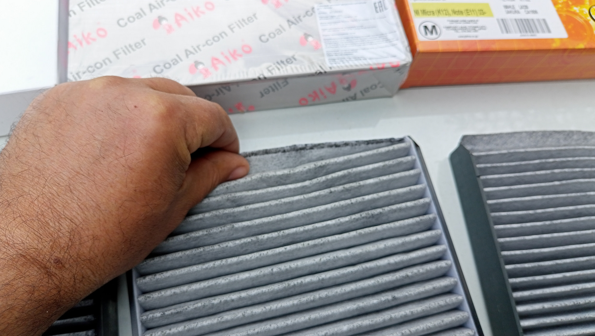 Стоимость вот таких коробочек в диапазоне 350-400р. за штуку. Тут вспоминаем цену оригинального угольного…Типа угольные…Трое из ларца, одинаковы с лица. Но только на первый взгляд…Различия начинаются сразу из коробки. Aiko самый светлый — видно пожалели угля…Ккачество. Хоть они и одинаковы с лица, но у Aiko висят сопли клея, как на самом фильтрующем элементе, так и на корпусе, у Miles не удаленный облой на корпусе…По размерам все 3 фильтра соответствуют оригиналу.Тут с Aiko немного не понял. Такое ощущение, что у него фильтрующий элемент съемный — он в отдельном корпусе и вставлен в рамку фильтра. Этот элемент приклеен к корпусу. При этом эта клейка разваливается прямо в руках…