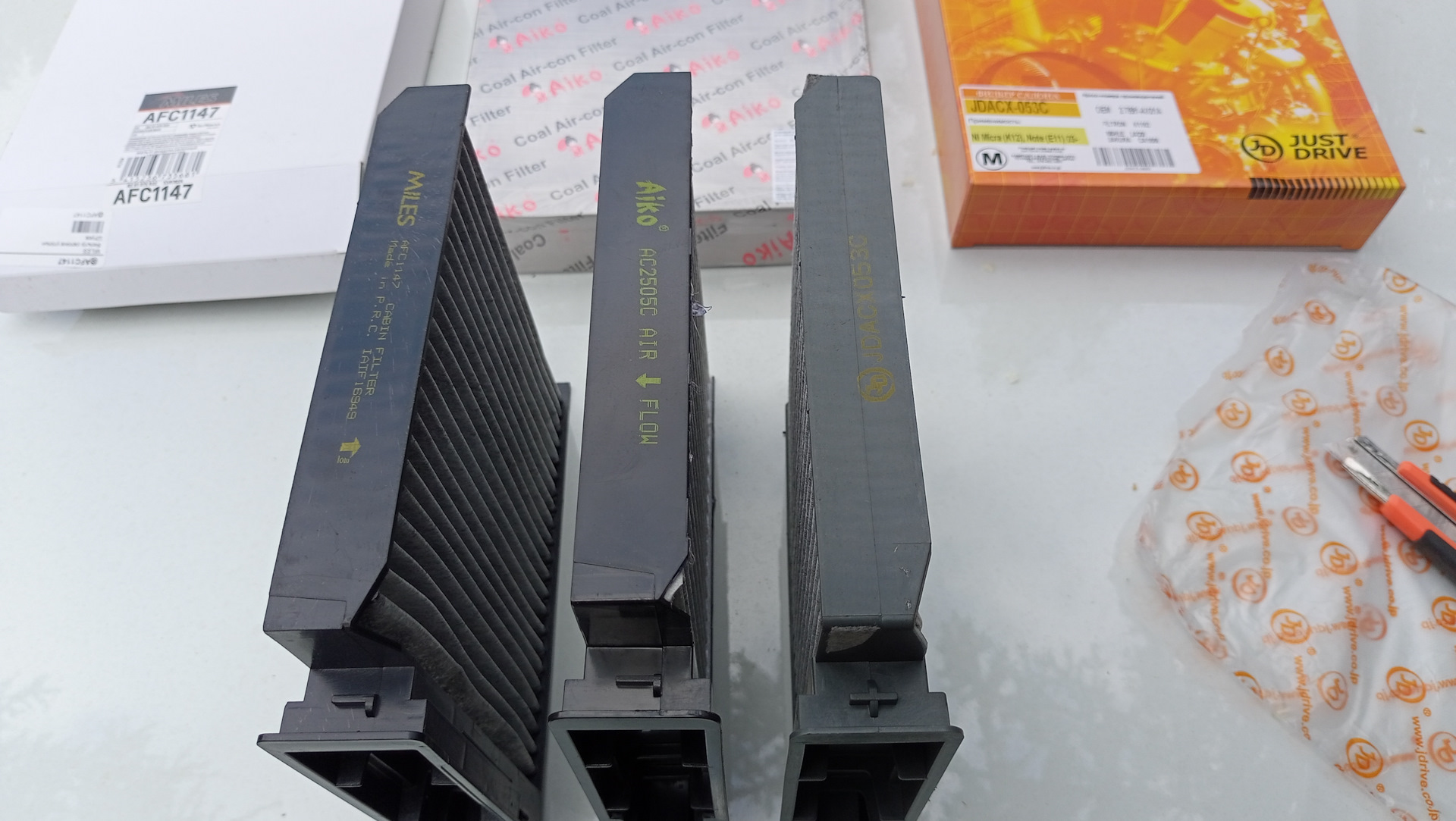 На пробу прибарахлился салонными фильтрами: 🤗 Just Drive JDACX-053C — 320р. Miles AFC1147 — 350р. Aiko AC2505C — 390р.