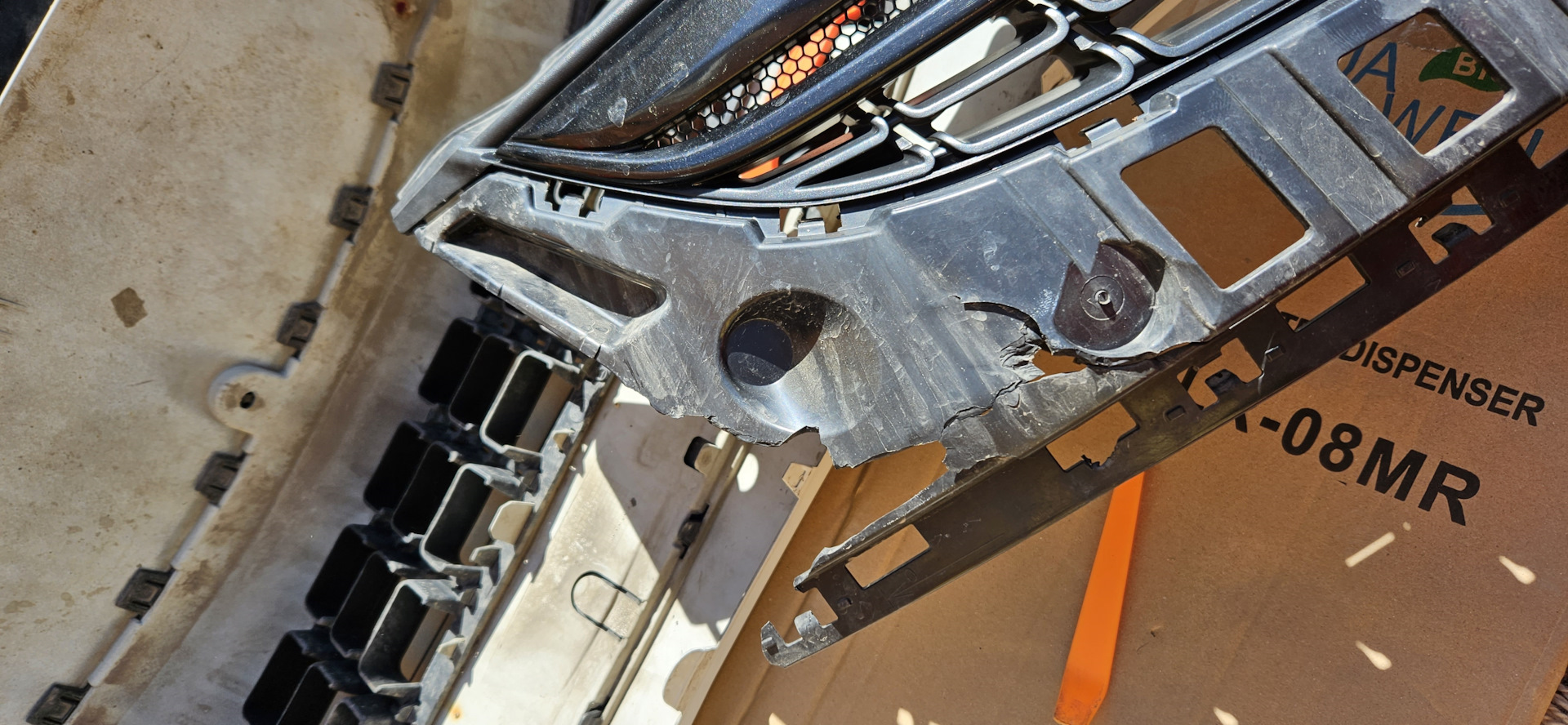 Добрый. Решетка осталась и молдинг. Решетка с повреждениями, есть фото в посте. Молдинг со значком выкрашены в чёрный цвет