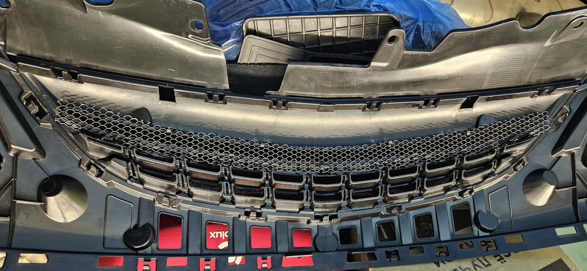 Дальше все банально, скидываем бампер и аккуратно отщелкиваем родной пластик, в виде верхней решетки.)