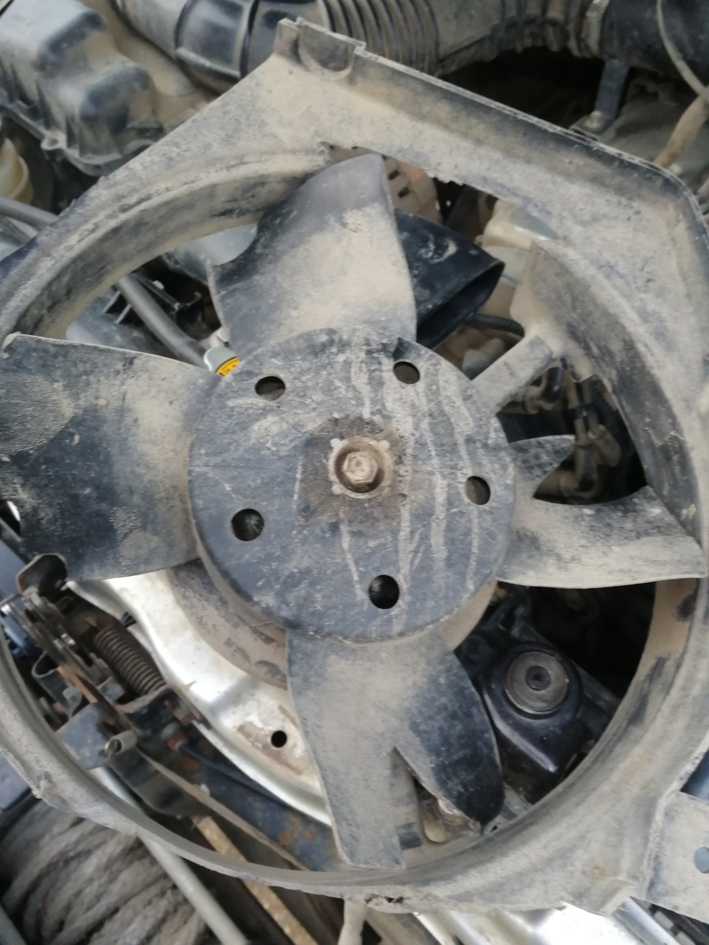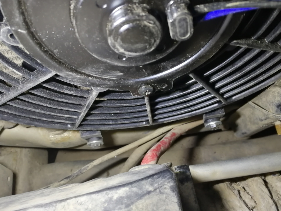 Во время очередной покатушки появилась сильная вибрация при включении дополнительного вентилятора, он пострадал в не равном бою с веткой…