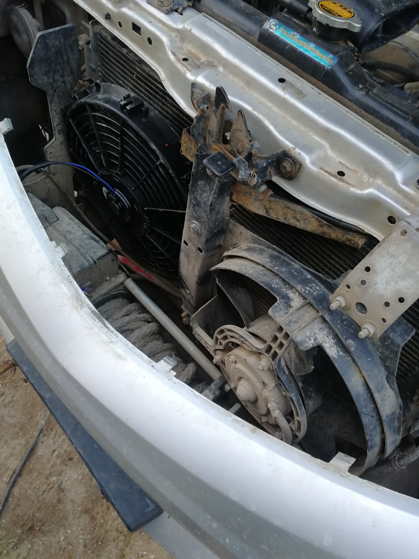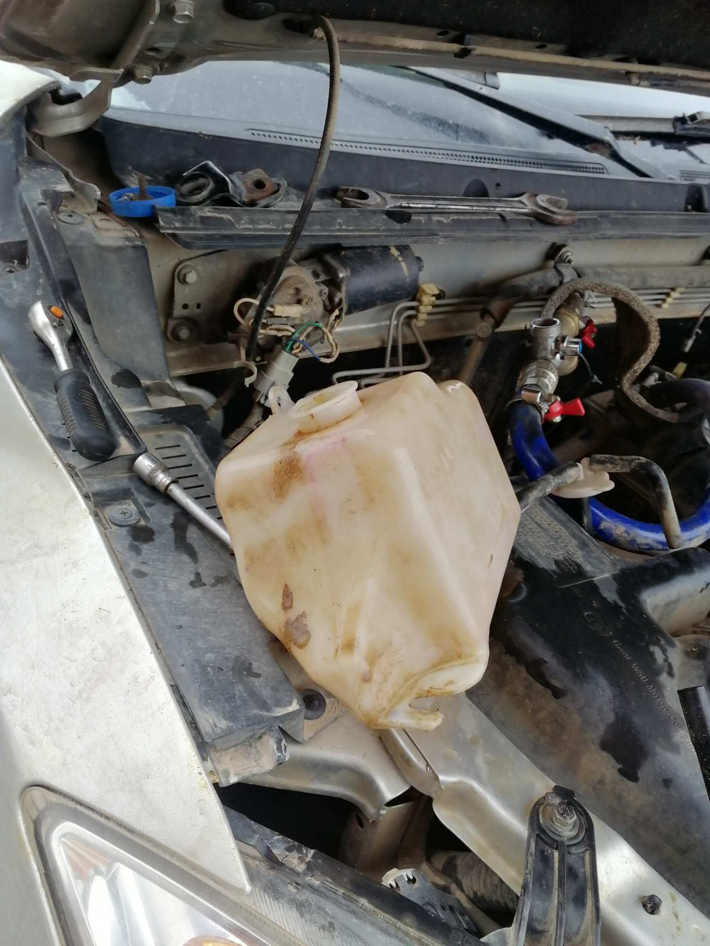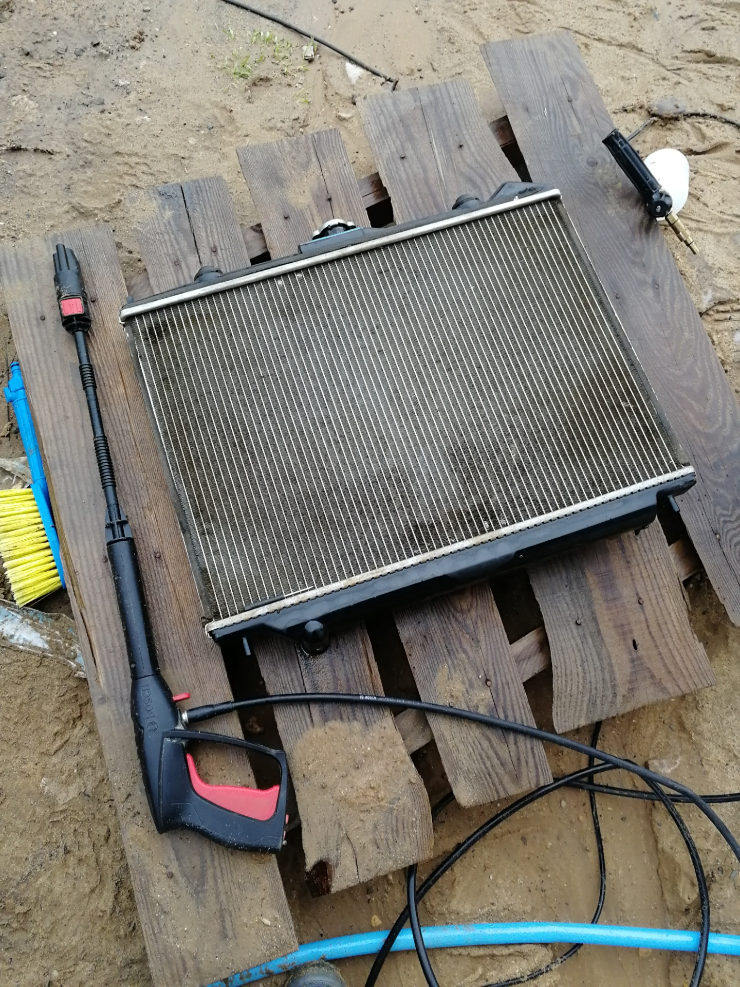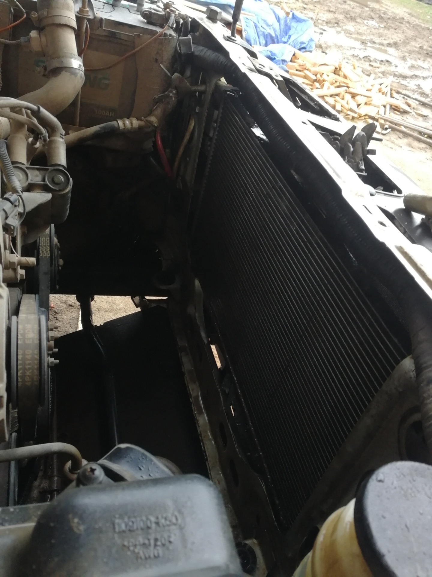 Дома отмыл подкапотное пространство, слил антифриз, снял радиатор, был он снизу очень очень сильно забитый грязью, отмыл