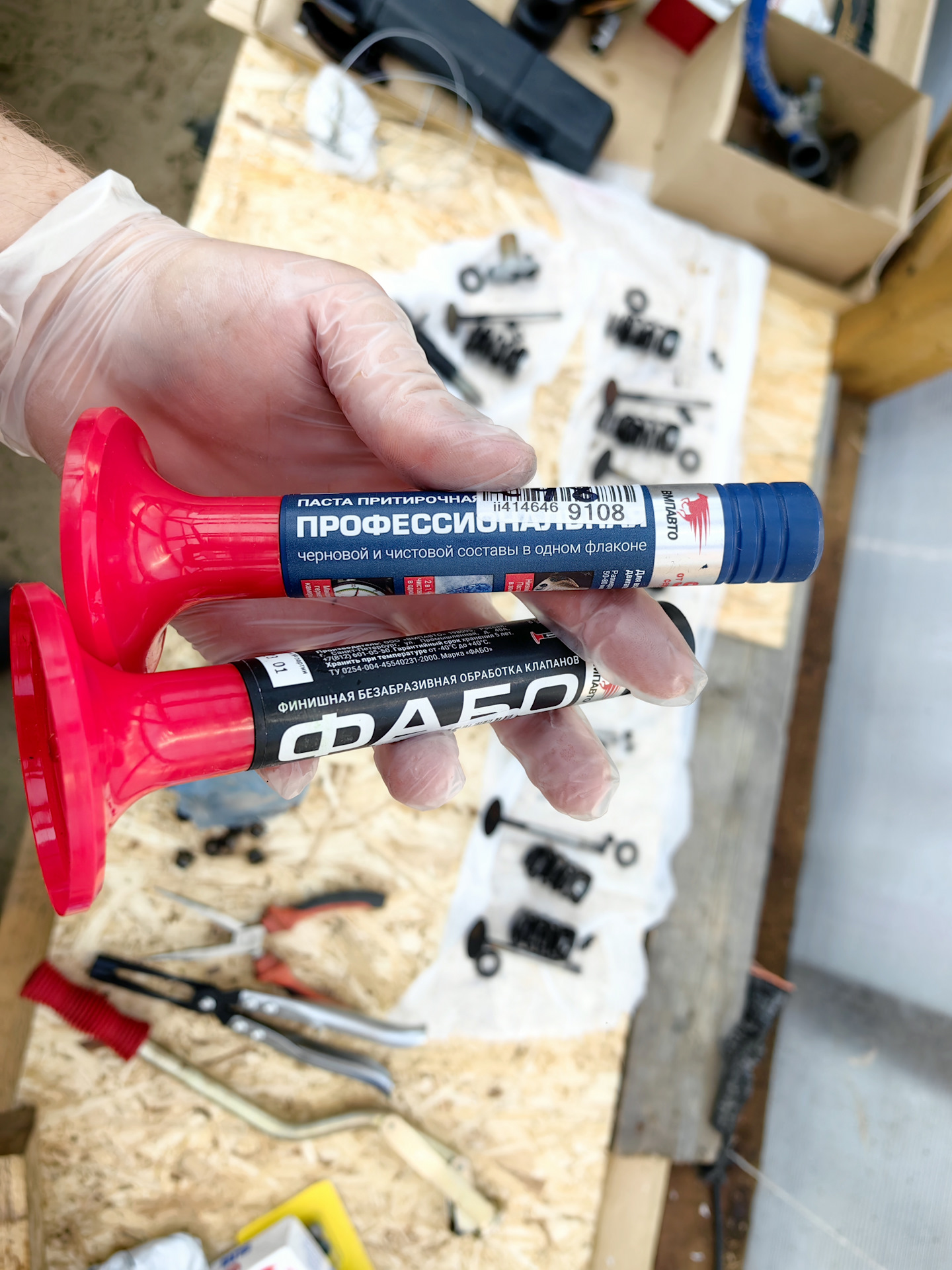 хотел сперва поставить Резерв, но что то сильно сомневаюсь что это оригинал, а оригинальность гоедзе можно проверить, введя код на их сайте с голограммы на обратной стороне упаковки. Пришло время притирки клапанов, для этого заранее приобрел притирочные пасты от ВМПАвто, одну профессиональную, другую ФАБО (для финишной притирки).