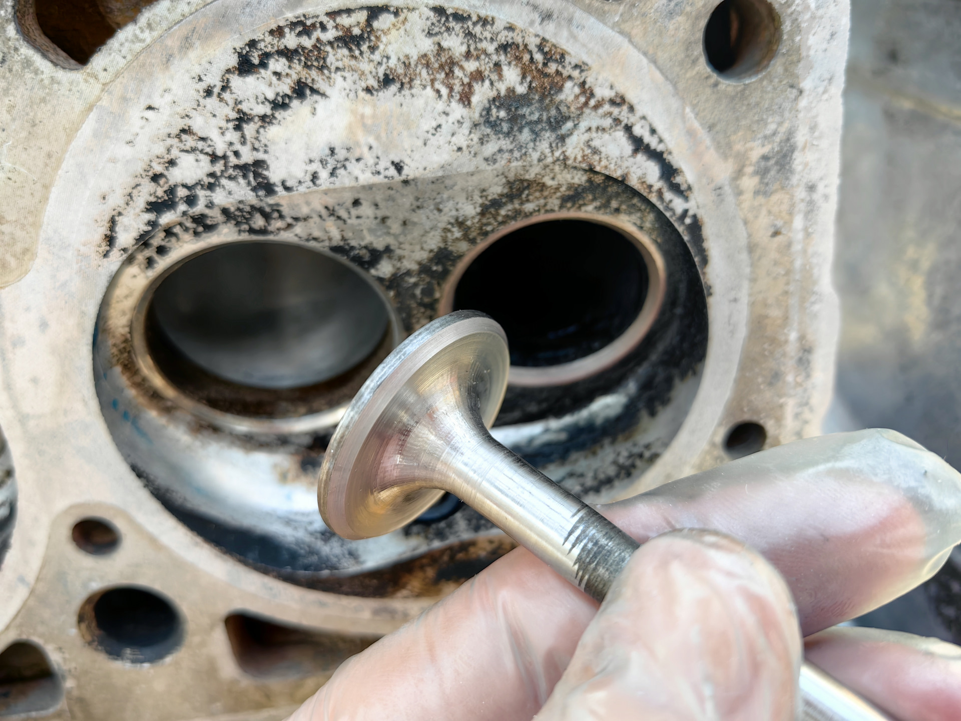 Качество притирки керосином не проверял, так как не хотелось снимать коллектора, потому что пришлось бы менять прокладку, а она у меня не стандартная, так как каналы увеличены. По теории, из некоторых рассказов и видео, если клапан даже был не очень хорошо притерт, то со временем клапан сам притирается к седлу при работе двигателя, поэтому типо даже достаточно сделать черновую притирку, хз правда это или нет, я не моторист со стажем🤷♂️ Притертые клапаны.