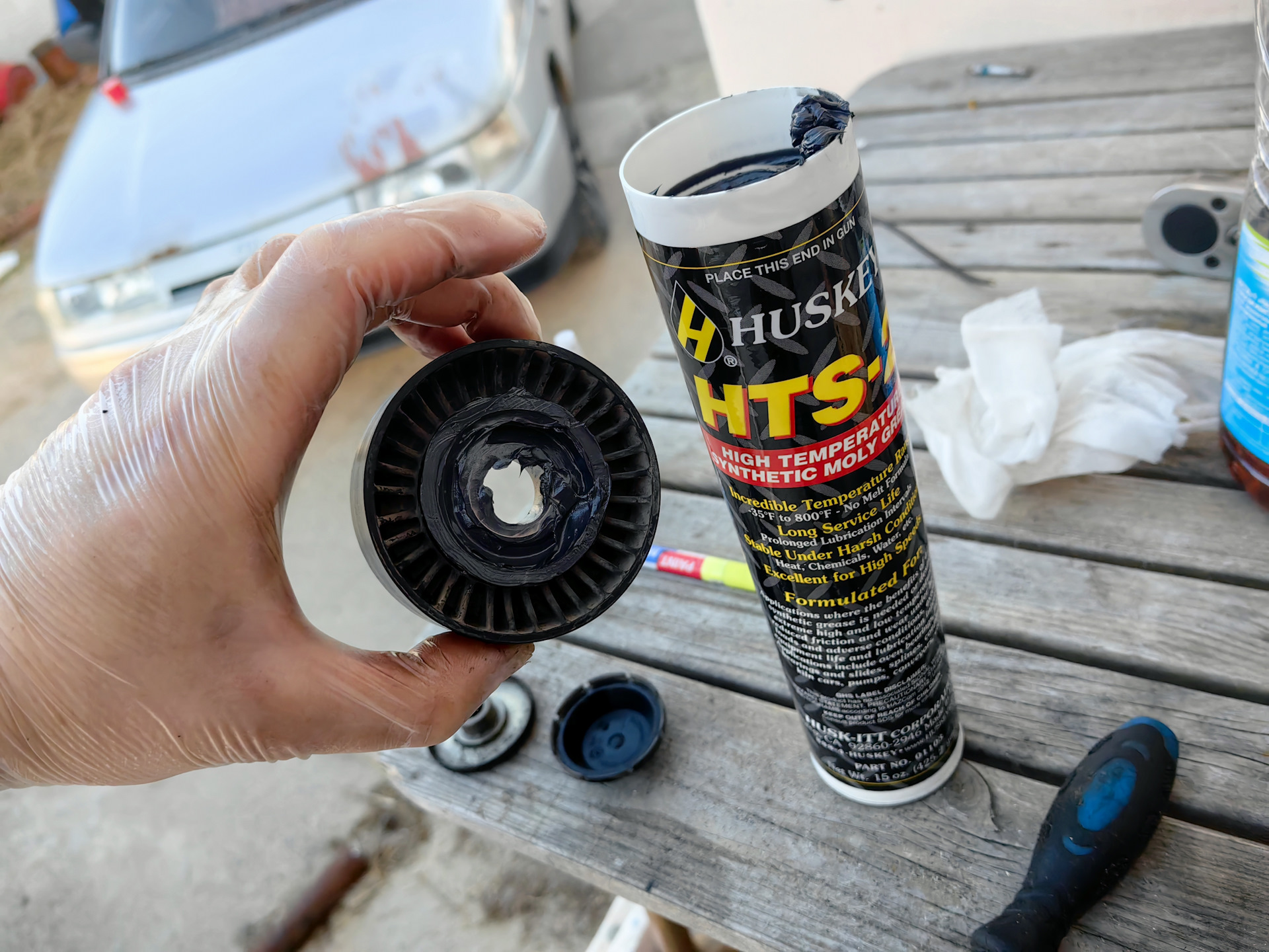 Обводные и натяжные ролики чуть шуршали, вскрыл крышки, а там смазка высохла. Промыл очистителем тормозов и забил в них американскую смазку Huskey HTS-2, высокотемпературную для высокоскоростных подшипников.