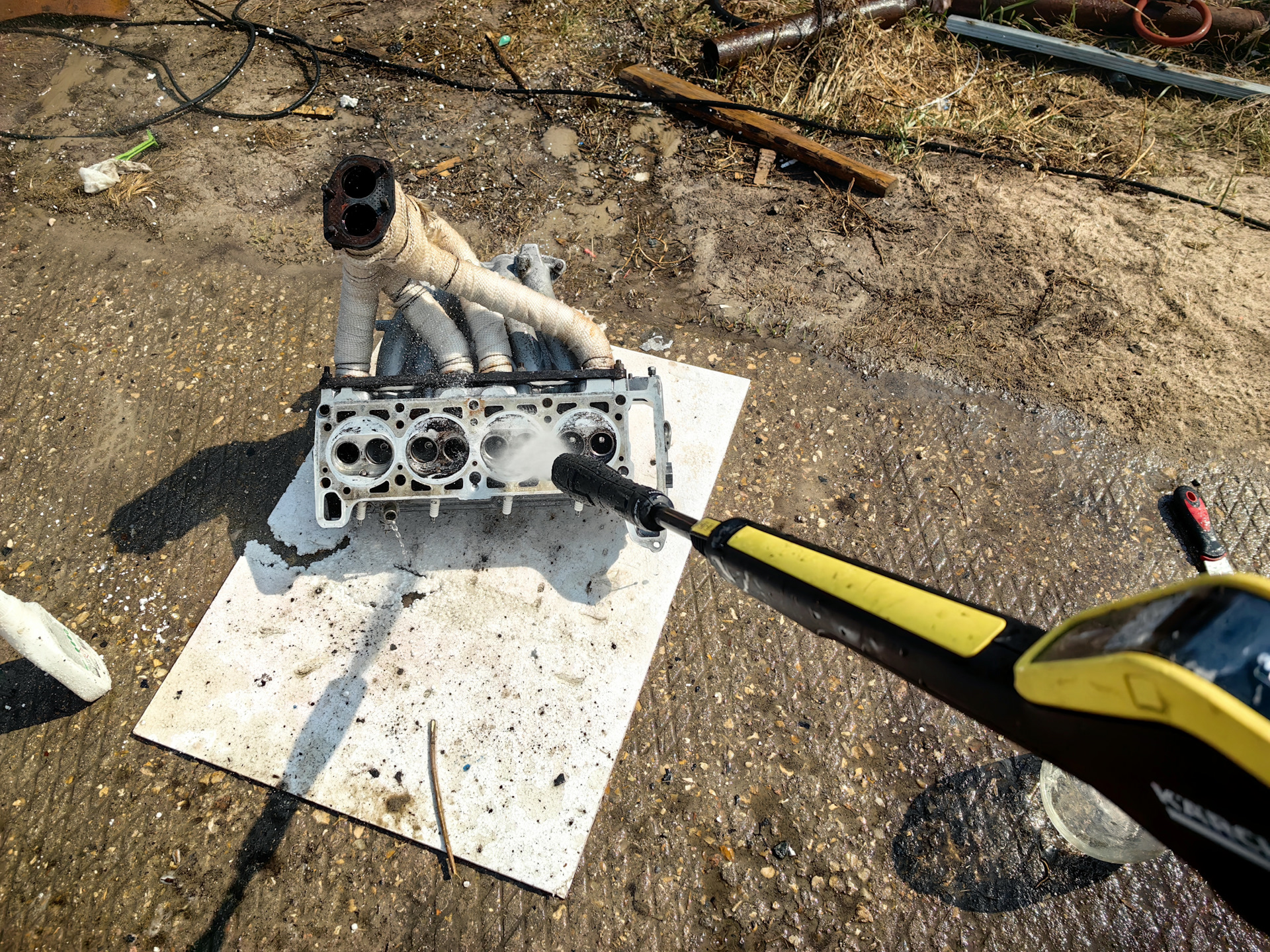 При мойке ГБЦ повредил термоленту фрезой от керхера, пришлось намотать поверх новую.
