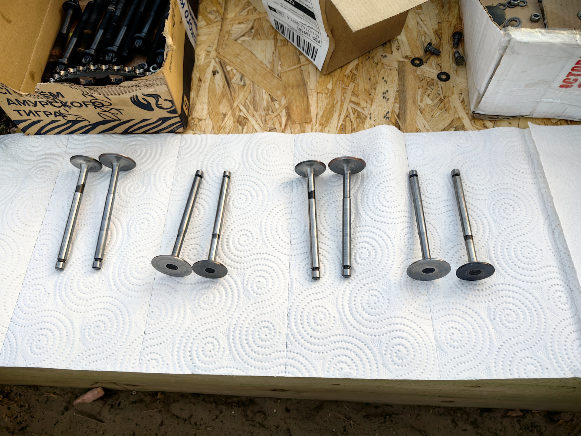 Проверил магнитом — выпускной магнитится очень хорошо. Я ни раз читал, что почему то у оригинала SM выпускные магнитятся, а у китайской подделки наоборот нет, очень странно. Спросил у одного человека с драйва, кто на свои жигули ставил эти клапаны, где выпускные так же магнитились, он сказал что больше 100 тыс км уже пробежала и все нормально. Так же прочел в комментариях, в одном из видео в ютубе, человек поставил себе 4 года назад такие же клапана в жигуль и до сих пор ездит, ничего не прогорело. Но ставить я себе эти клапана не стал, положил в ЗИП, так как у меня были еще и другие клапана, которые я так же заказывал заранее у мужика, у которого покупал расточенную ГБЦ и так же купил у него новые дюралевые тарелки с роспуском 2 мм.