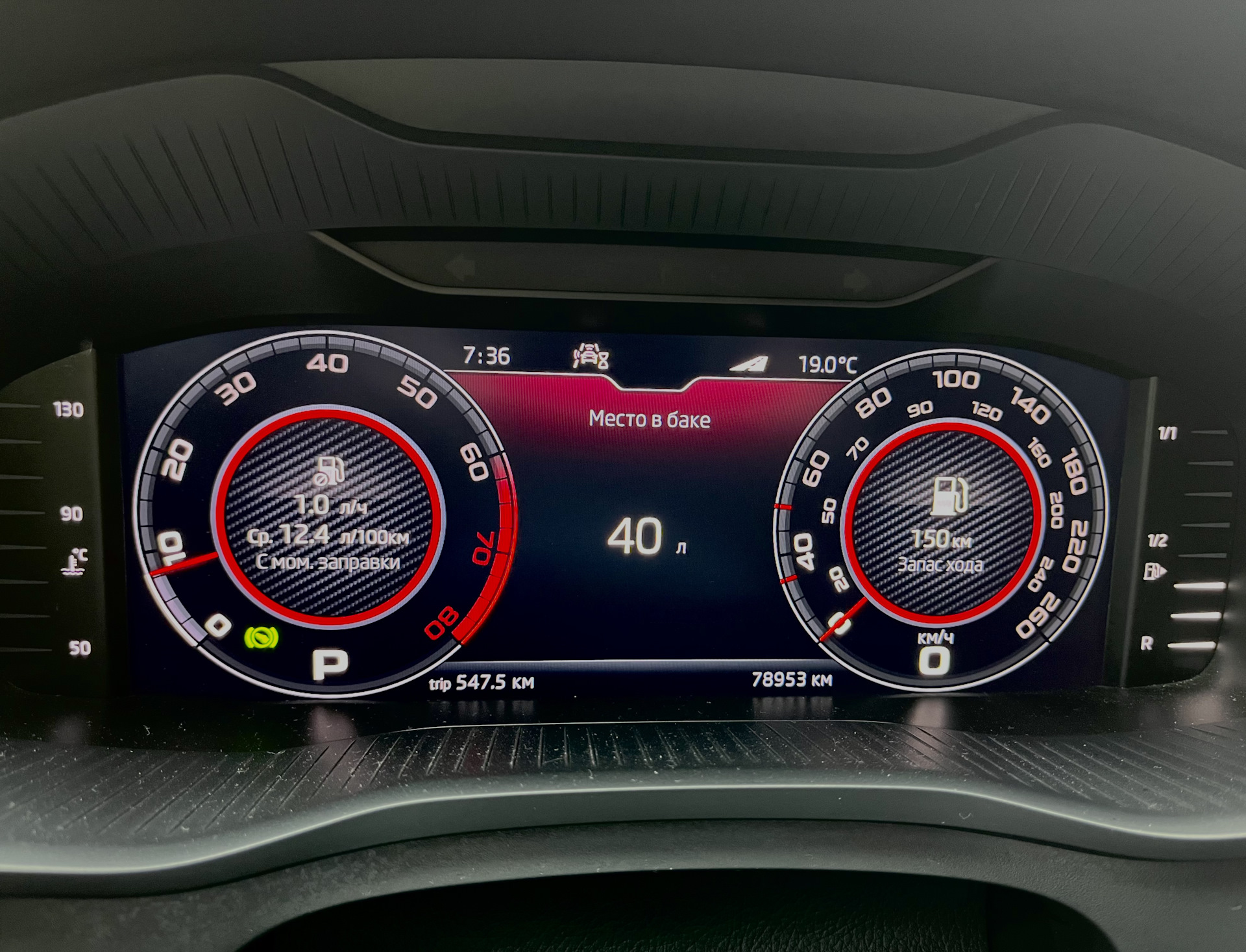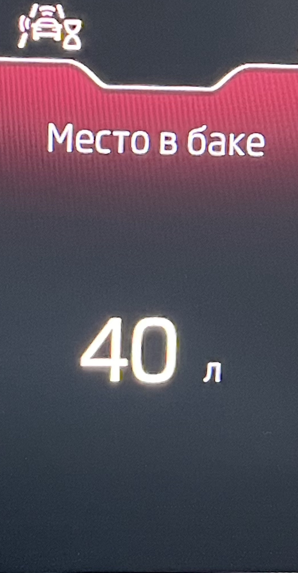 Отображения свободного места в баке на экране приборной панели: