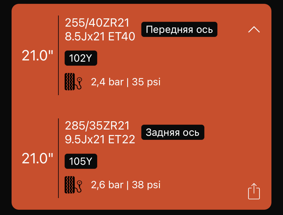 Типо перед 255/45 r21 и зад 285/40 r21