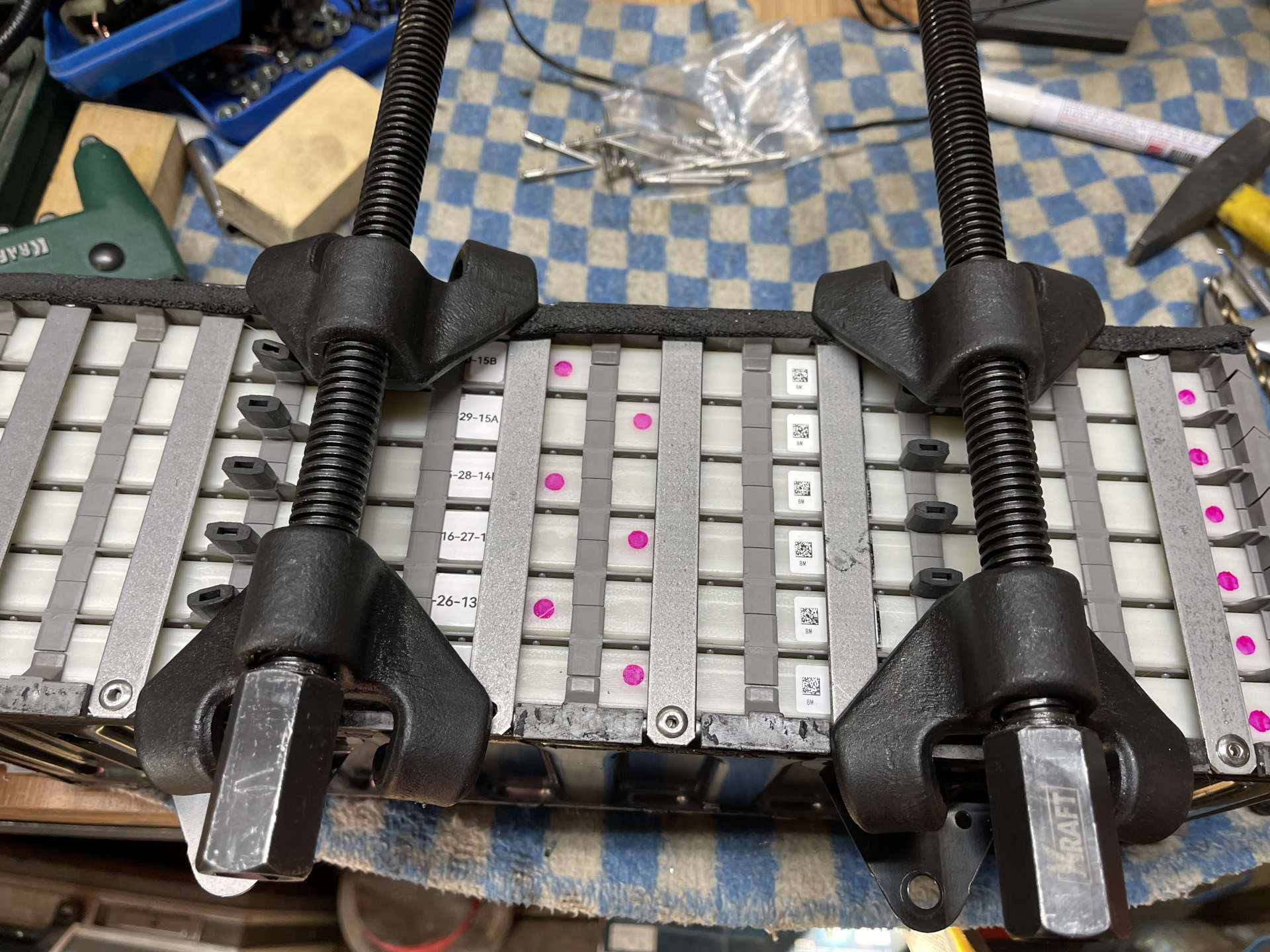 ✅ Снять боковину и удалить остатки клепок (желательно пересчитать количество удаленных клепок, что бы не дай бог какая-нибудь попала между элементами и не коротнула в процессе стяжки)
