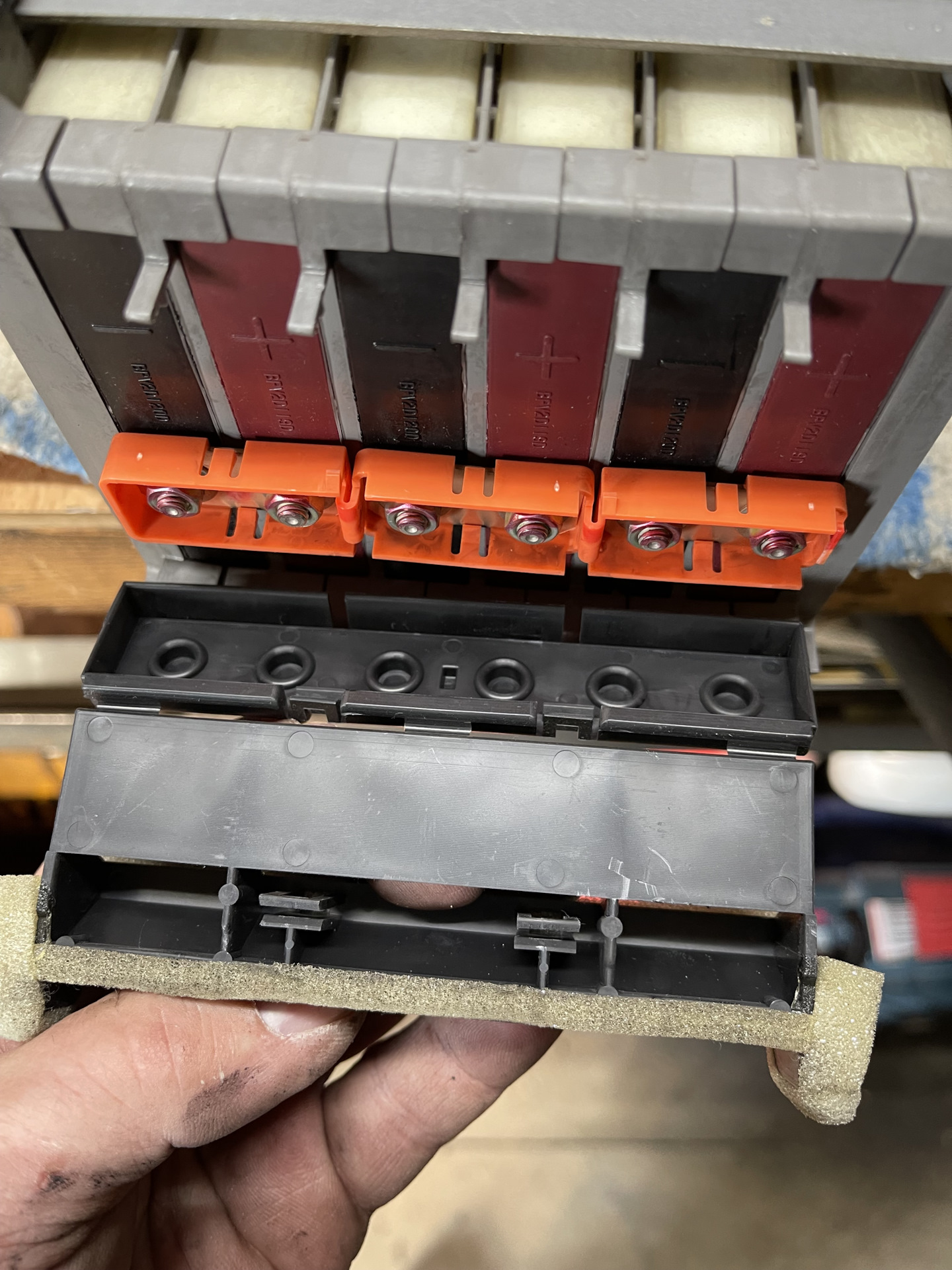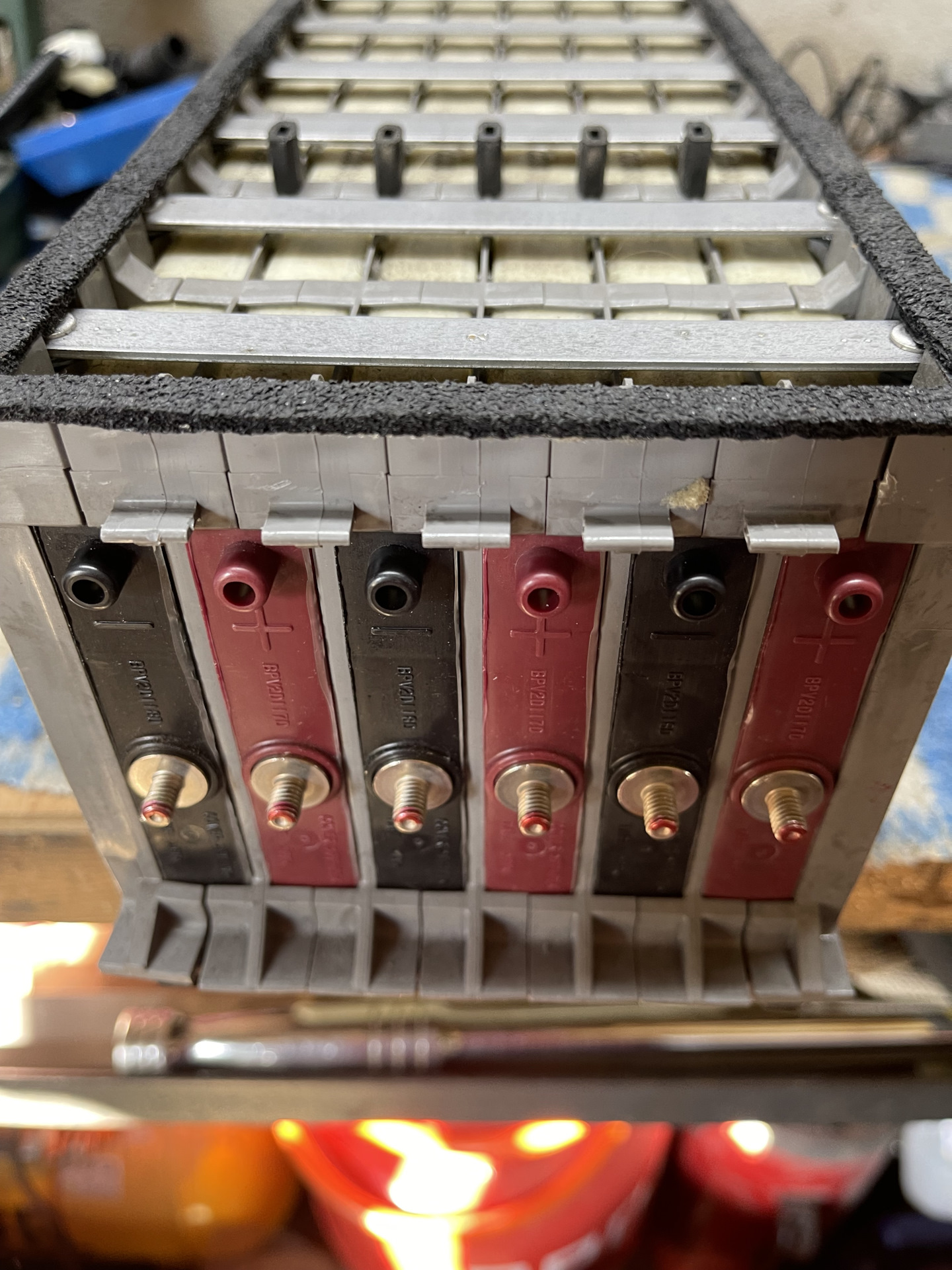 💡 ПРИ НЕОБХОДИМОСТИ! ЕСЛИ ИМЕЕТСЯ РАЗБРОС НАПРЯЖЕНИЯ ПО ЭЛЕМЕНТАМ, КОТОРЫЕ БУДУТ УСТАНАВЛИВАТЬСЯ — Перед началом работы все новые элементы сложить минус к минусу, плюс к плюсу, соединить все минусовые клеммы одним проводом, соединить все плюсовые клеммы другим проводом для выравнивания напряжения во всех элементах, оставить в таком виде на пару часов (на время пока демонтируется ВВБ).