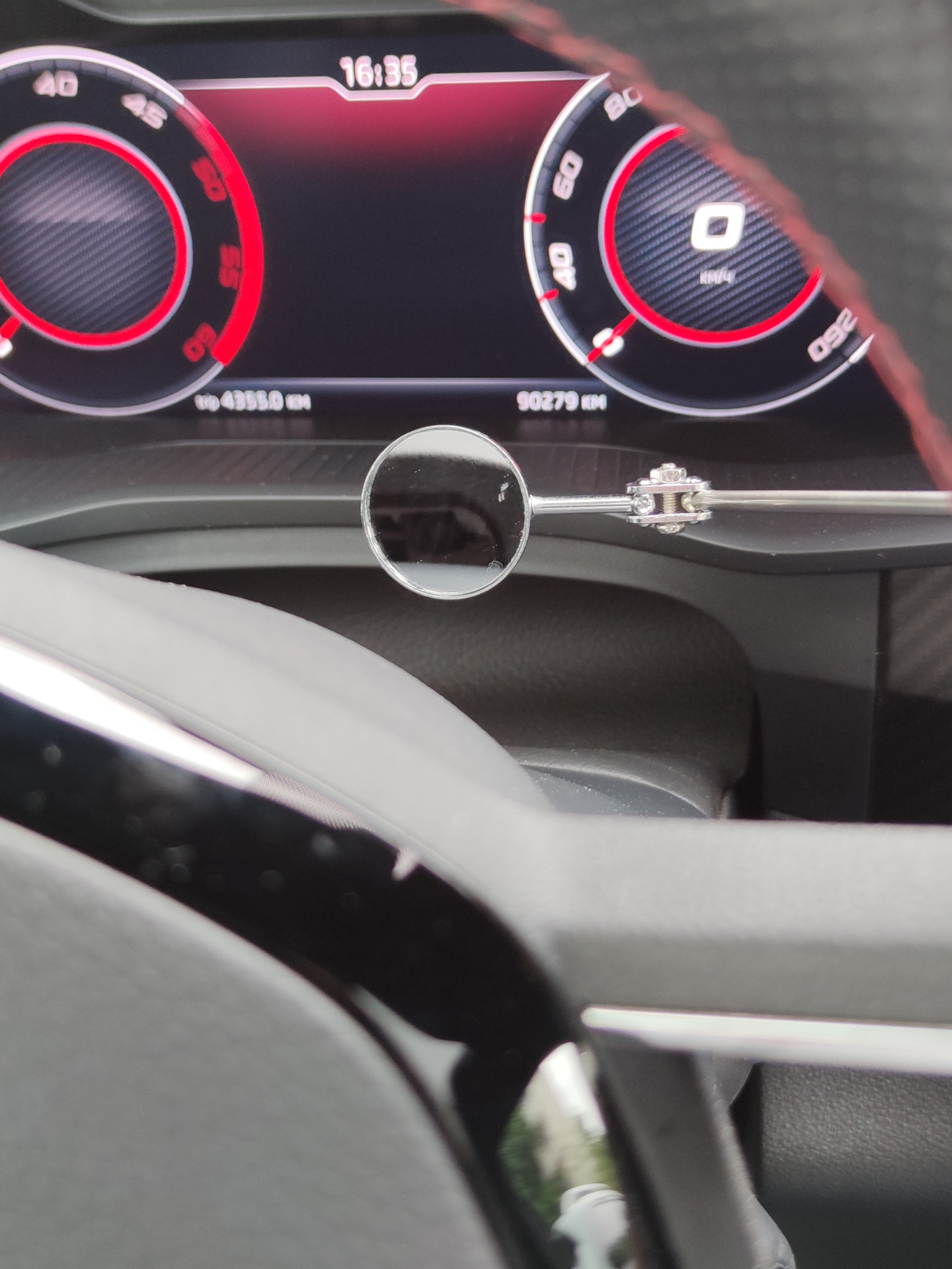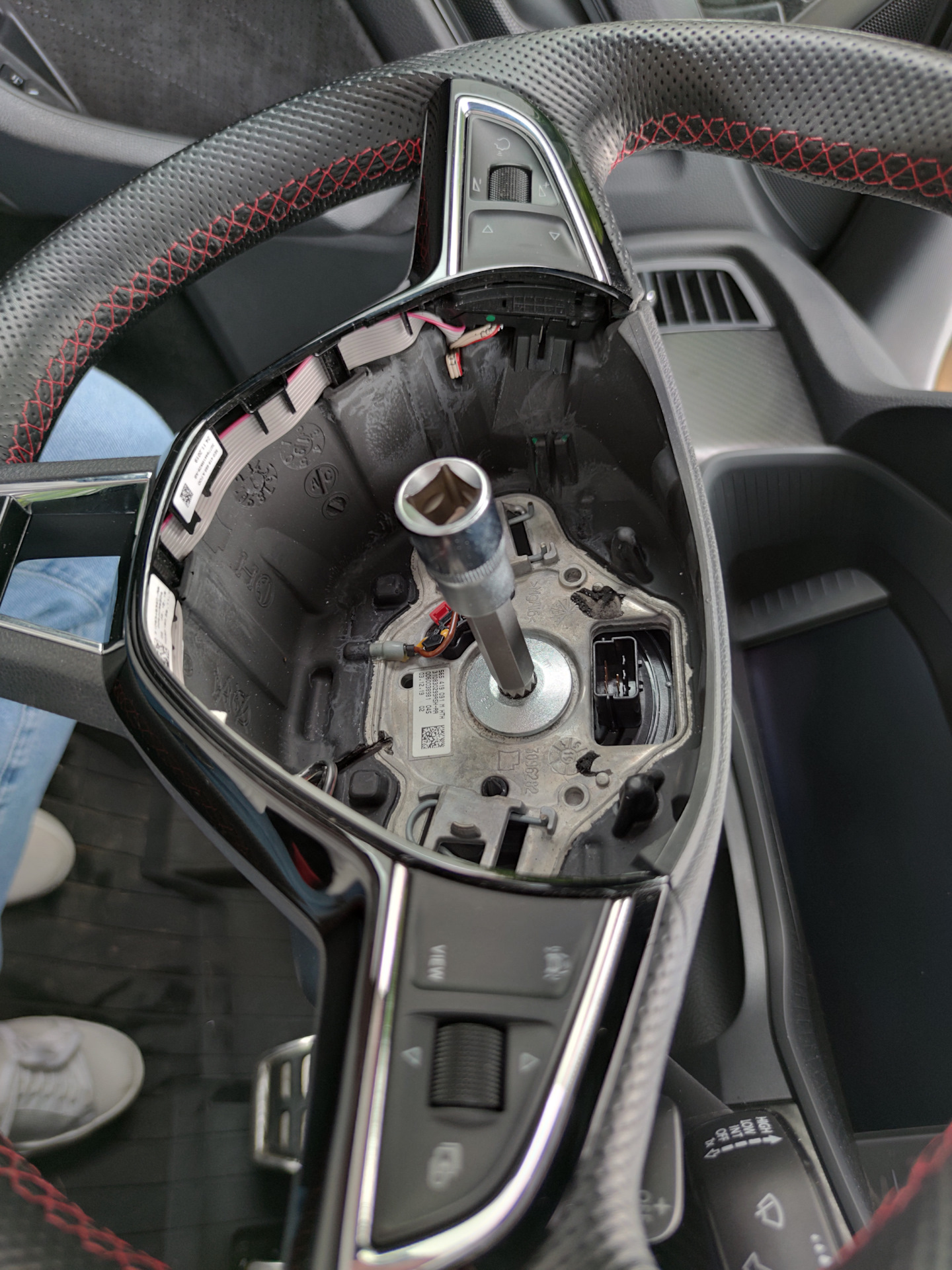 И так, начинаем, Поворачиваем руль, чтобы был доступ для отщелкивания подушки. Заркальце нам в помощь