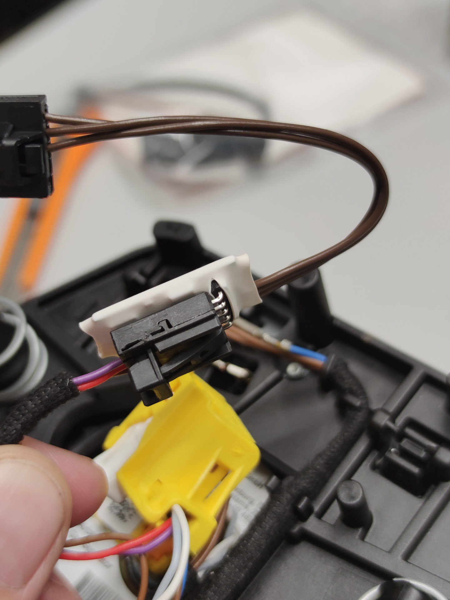 Подуха в руках, Отсоединяем фишку обогрева, и основной разъем.