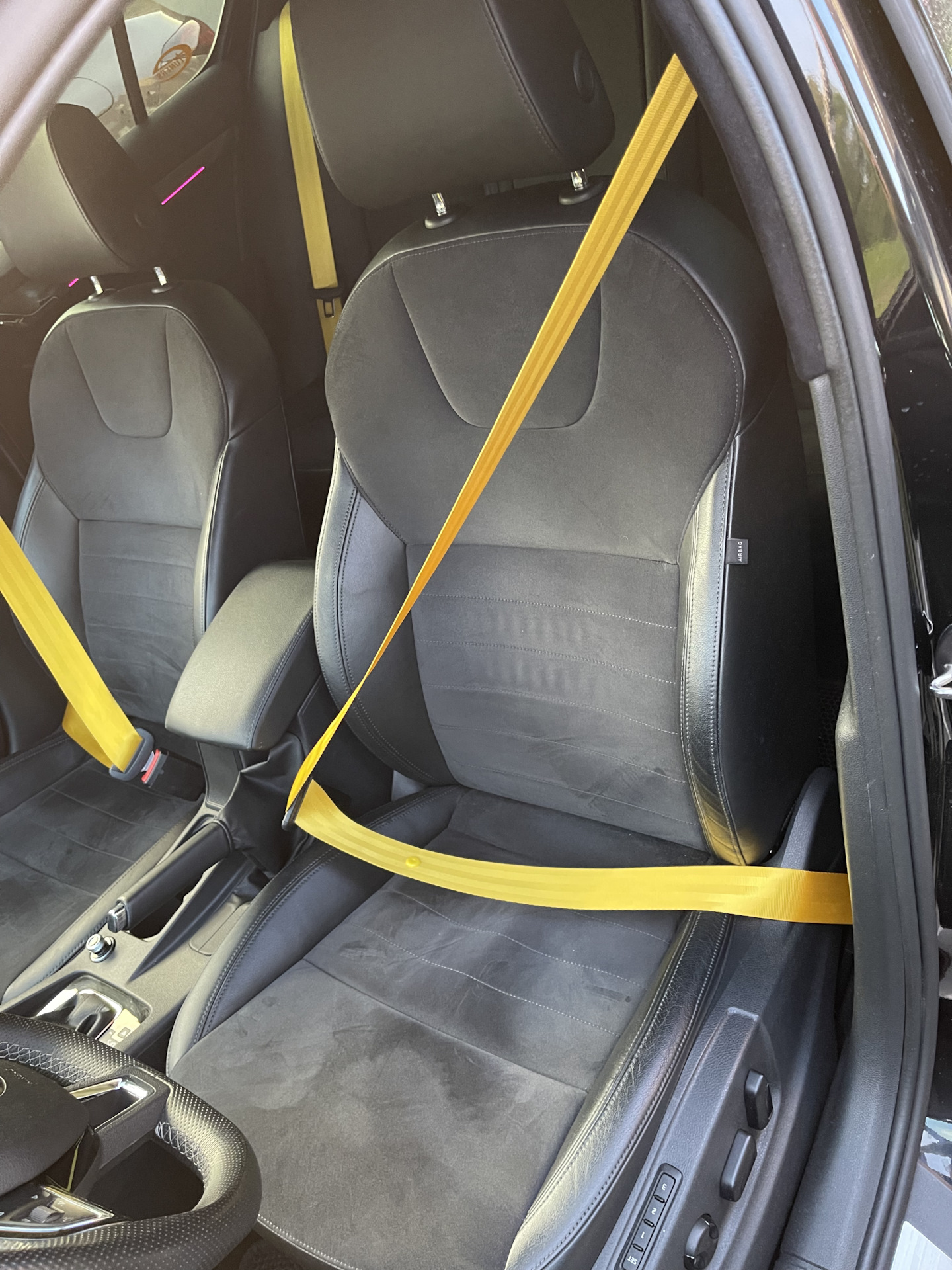 Что еще нужно для стилизации салона ? Конечно же РЕМНИ. Ну и как вы думаете, какого они должны быть цвета в моем случае ? Конечно же желтый 🟡. Почему ? Потому что предыдущий пост надо читать . Но для ленивых подскажу — под цвет тормозов. Ну и так уж вышло, что моя благоверная подслушала эту тему и решила мне это все подарить, пока я был в командировке по работе . Отсутствовал несколько дней и предположить не мог, что что-то происходит. Из того что я знаю: занимались ребята из компании Velescentr. Мы у них и руль перешивали на предыдущей машины. В общем, ребята крутые, знают свое дело, качество на высоте . Ну и посмотрите на результат :