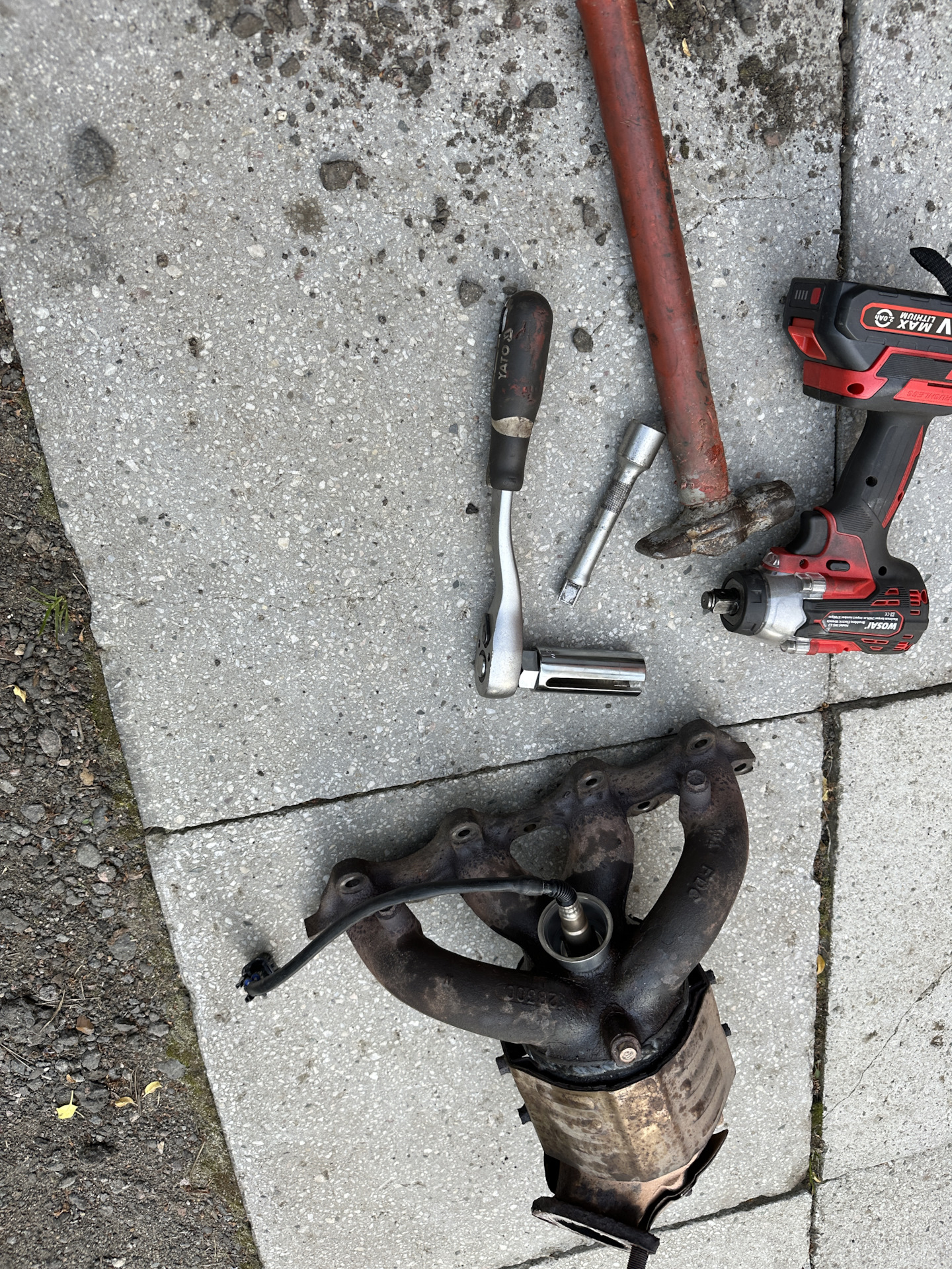 Давно ничего не писал тут. И да, всем привет)))🙋🏻♂️ И так спустя примерно месяц после удаления катализатора выскакивает ошибка — Р0030. Тема уже давно пройденная, это понятно. Решаю сразу заменить кислородник, но все так просто как кажется. Заехал к ребятам, говорят, ща все за 10 минут поменяем. Чем только не крутили, ничего не получается. Покатавшись чуть меньше недели, решил лезть сам. Купил новый ключ для снятия лямбды. После работы рванул в гараж, съемник на датчик, вороток на старт — не удача. Пришла в помощь труба в 2,5 метра и снова не удача. Подключаю в помощь гайковерт и снова не удача, это мягко говоря, сорвал все грани. Решено снимать коллектор, потанцевал с бубном и коллектор в руках. Отправил его на операционный стол ( верстак с тисками ), отстриг провода под корень, после чего набил головку на 21мм. Приходи снова в помощь гайковерт, в течении примерно 2-3 секунд лямбда извлечена. Ну а дальше в обратном порядке танцуем — новый датчик на свое место, коллектор обратно приляпываем. Ключ на старт и чудо, все отлично, ошибок нет