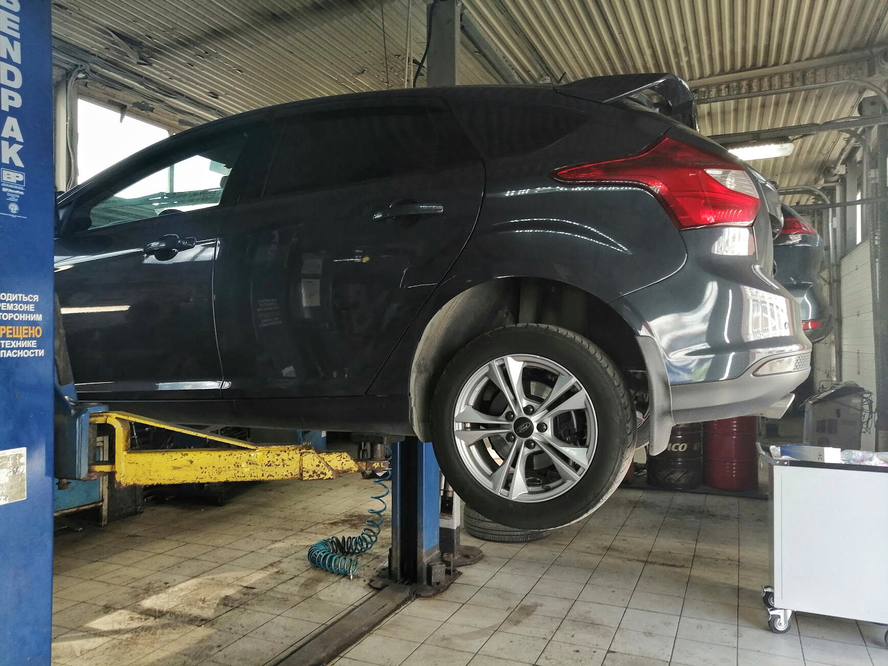 После процедуры по замене костей, чтобы все обтянуть под нагрузкой и за одно проверить углы, переезжаем на развальный стенд.