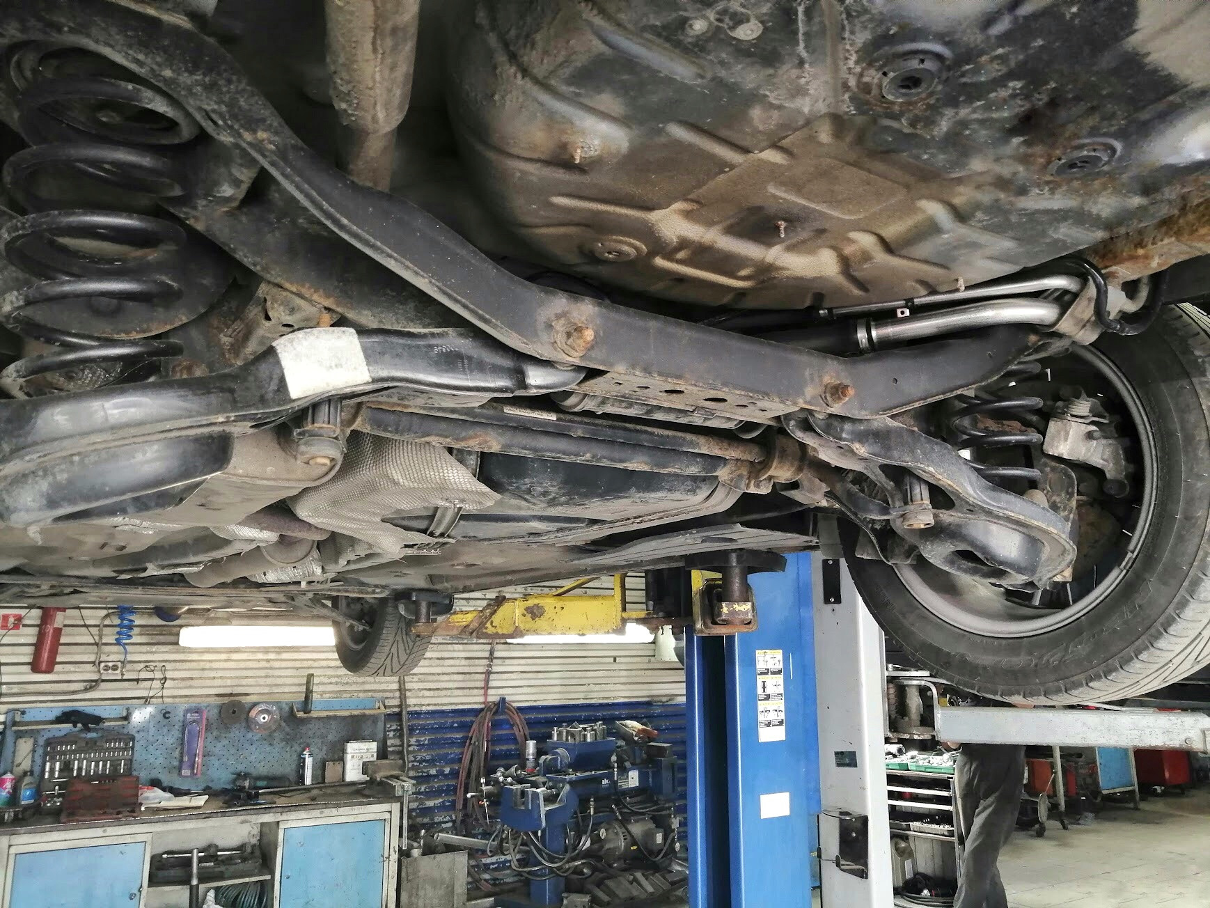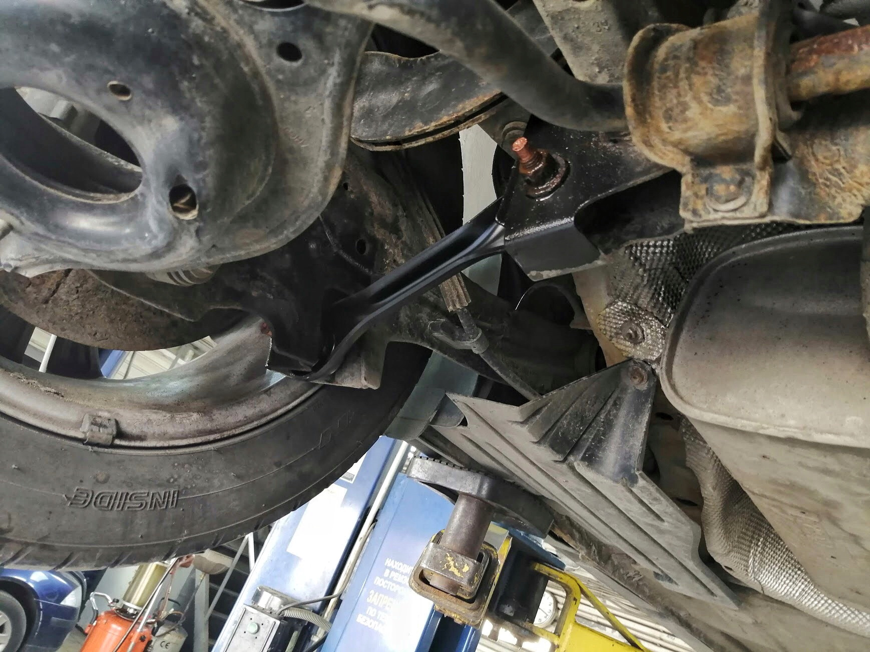 Тут как и ожидалось, даже после замены шаровых и задних железяк, все в допусках. Но, на всякий случай, все равно покрутим гайки и болты, чтобы тютя в тютю подровнять.