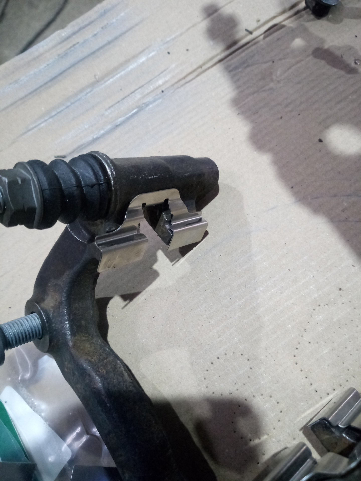 Почистил скобы, отверстия. Подварил ямы в месте, где опираются колодки. Обточил. И поставил противоскрипные пластины.