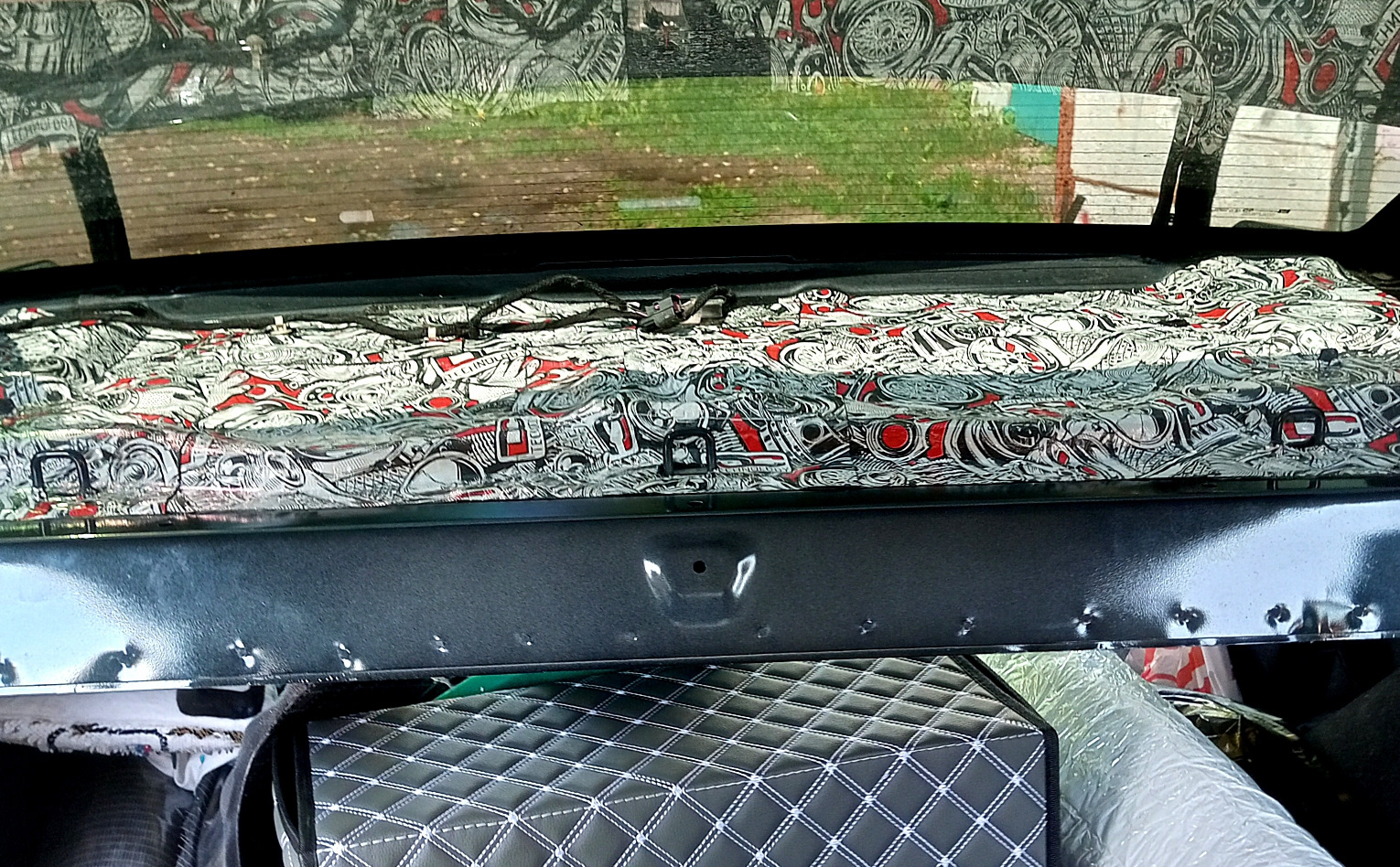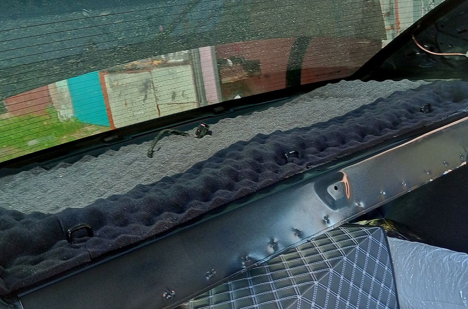 Начал с разбора, открутил все ручки, очечник, передний плафон, снял задний плафон, задние клипсы, все пластиковые стойки, откинул спинку заднего дивана, снял три клипсы задней полки, и в самомом багажнике ещё две клипсы, которые держат полку, затем приподнял полку и вытащил разъëм дополнительного стоп сигнала, после снял полку.