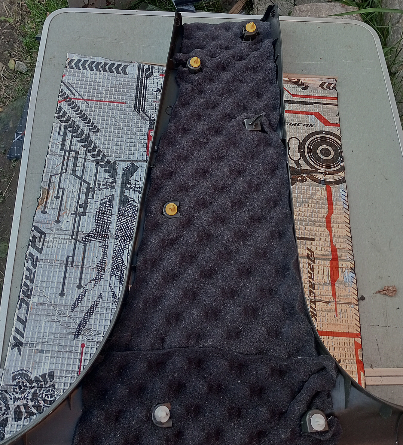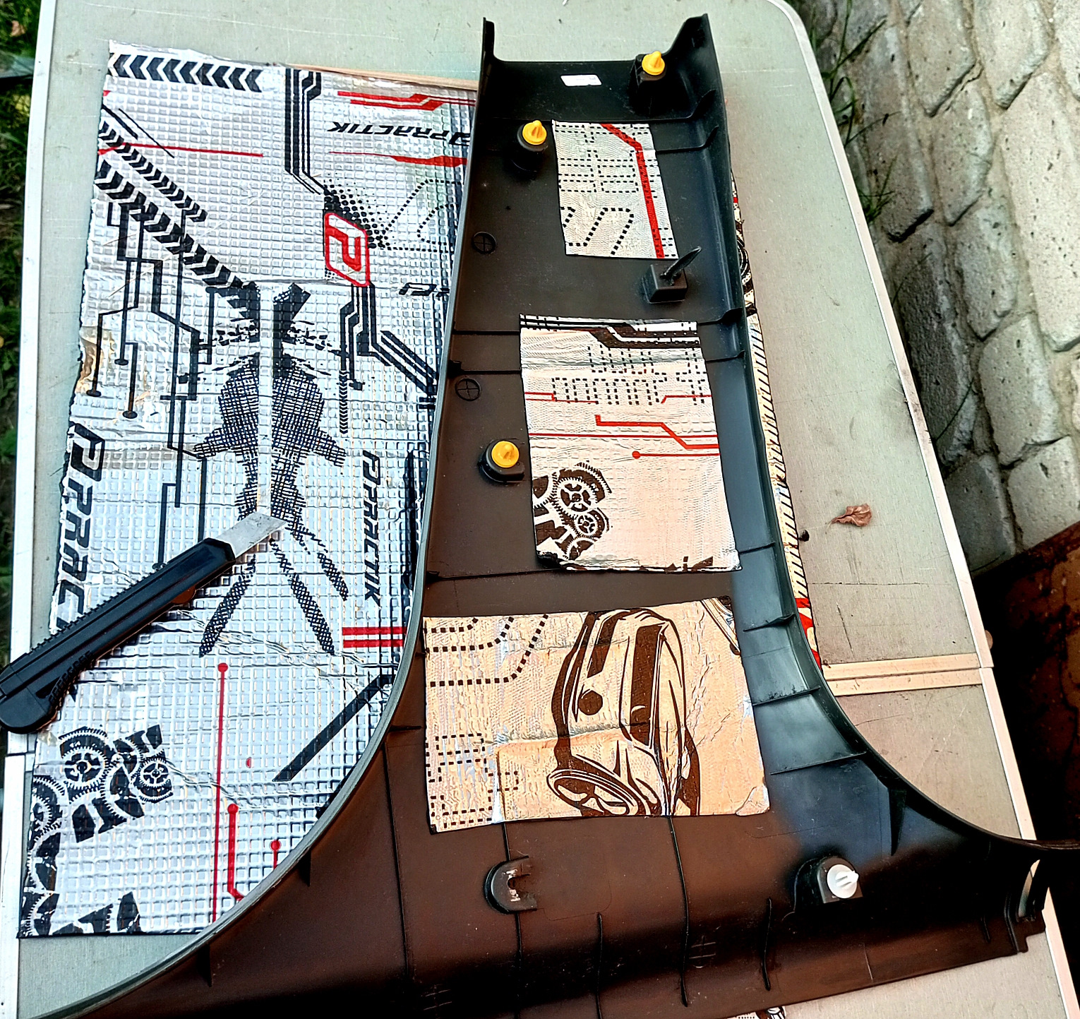 Далее вытер полку от пыли, обезжирил и прикатал виброизоляцию.