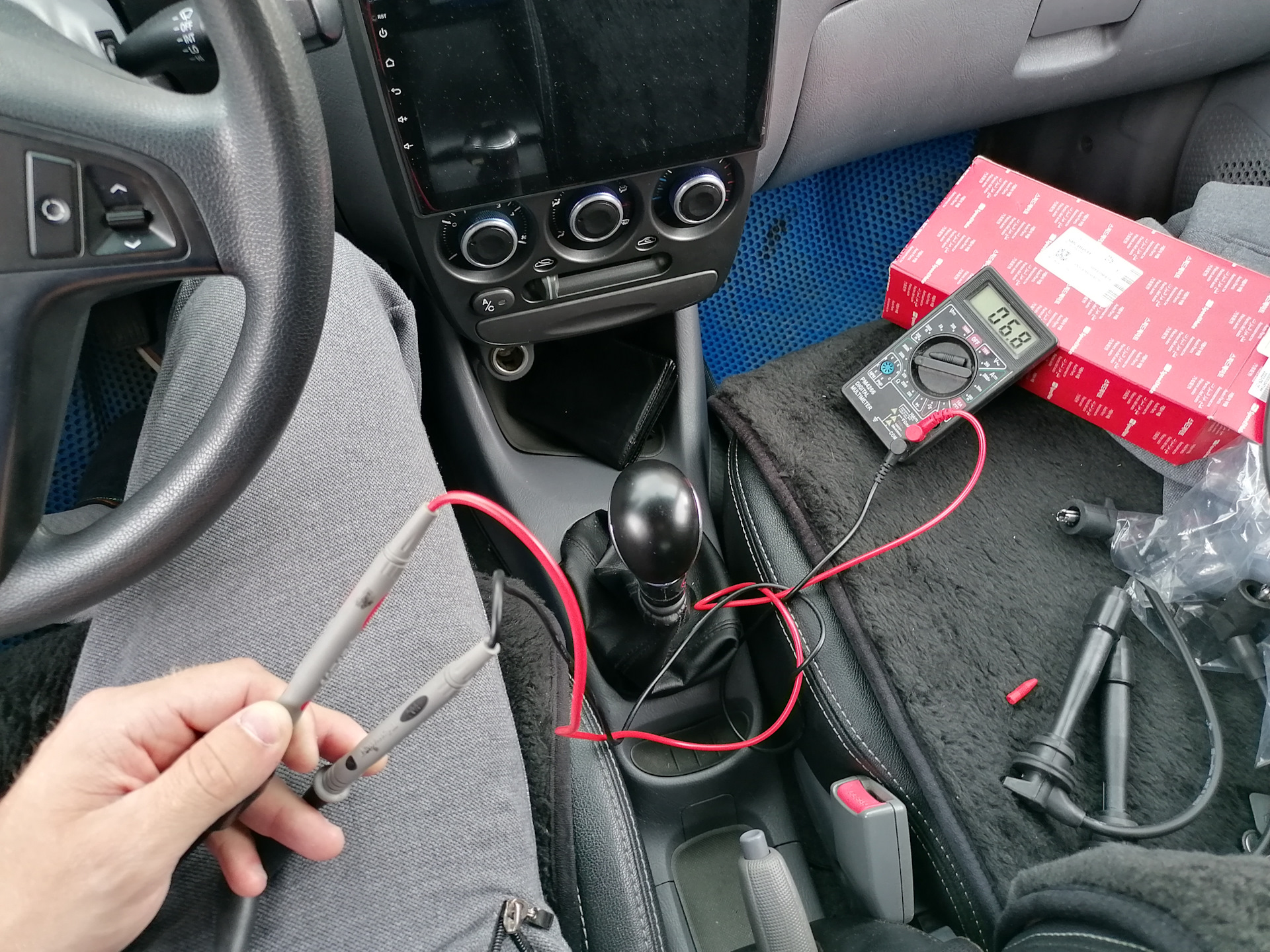 Приехали значит провода, забрал их. И как раз в авто был мультиметр (выносил его для того, чтобы руль подключить к магнитоле — это позже будет описано уже) и замерил сопротивление в них: