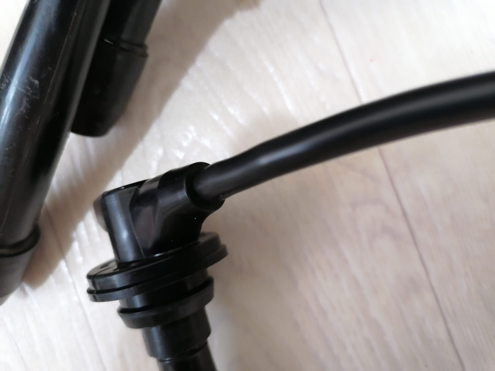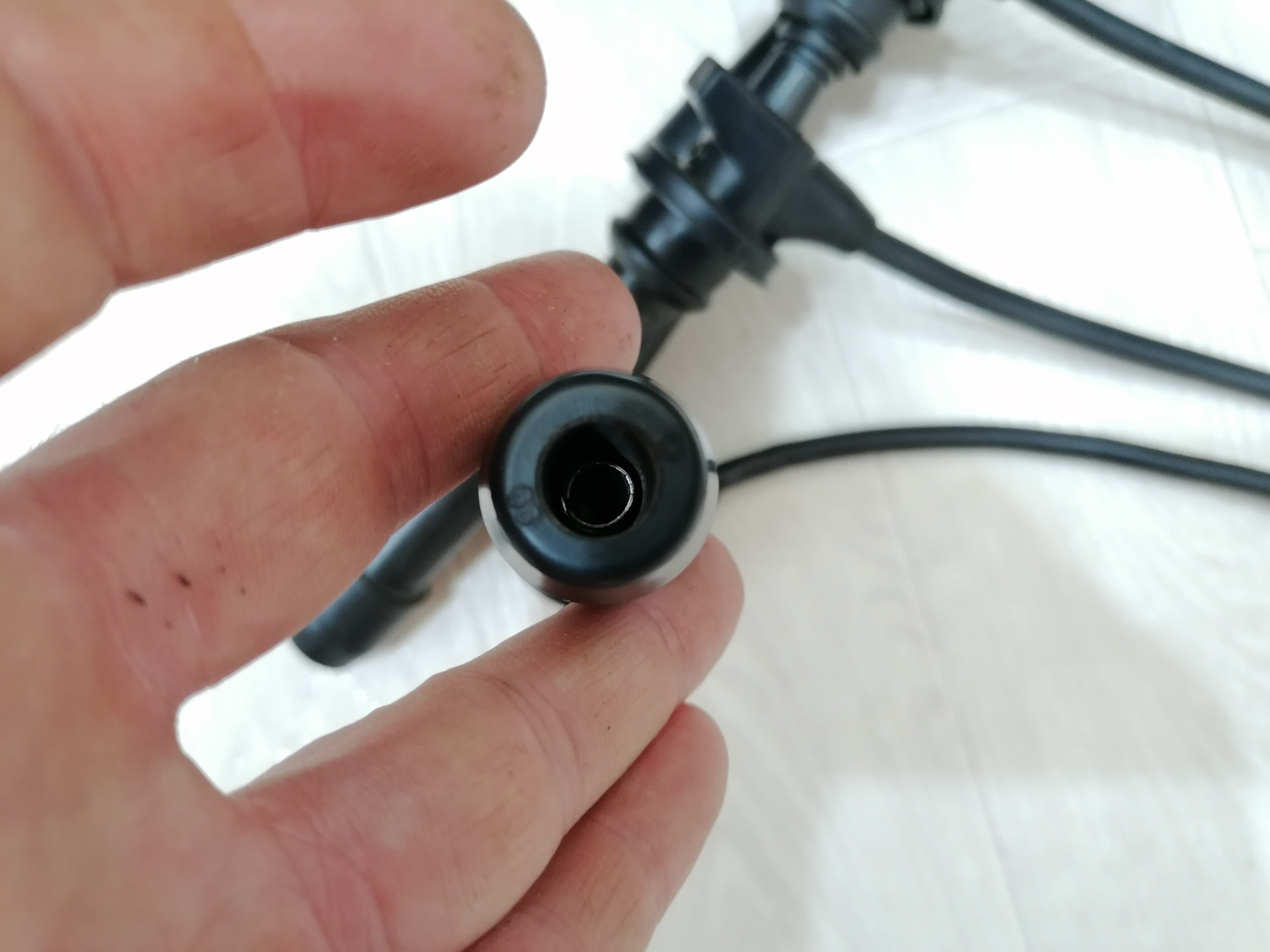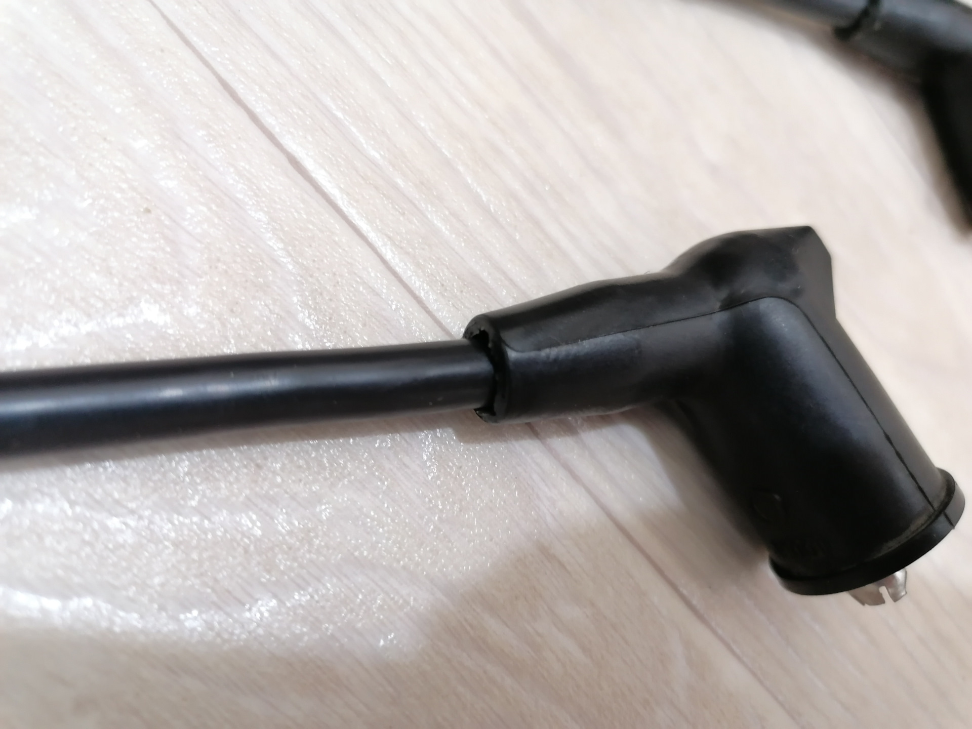 1) В этот раз провода имели больший диаметр — 7 мм вместо 6. При таком диаметре провод будет плотно проходить через резиновый наконечник и его не придется ничем склеивать. Но и заталкивать такой провод труднее уже! И с этим вполне можно справится — расскажу ниже;