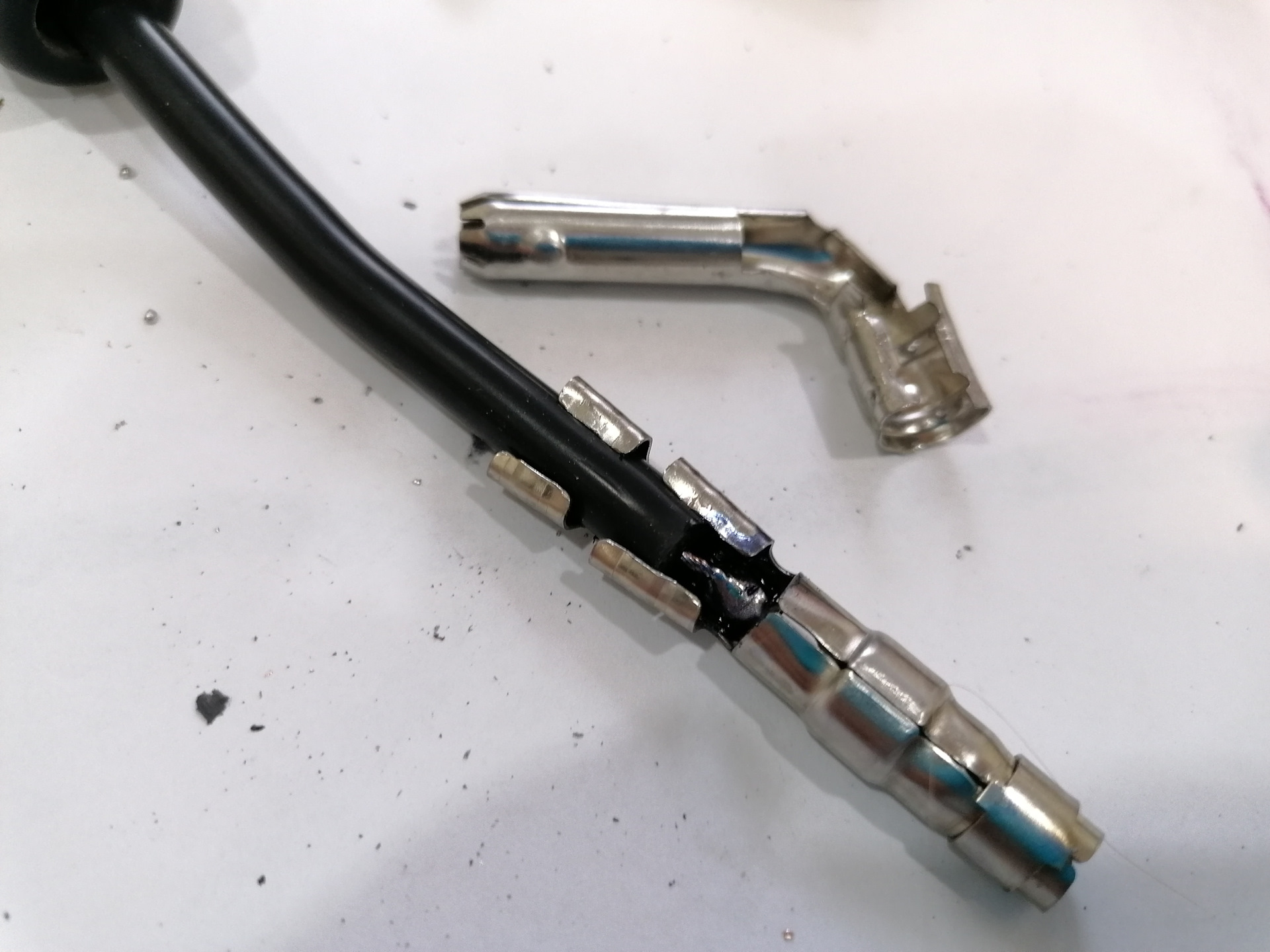 2) Концы проводов были не просто обжаты, но и мертво припаяны! А сверху был нанесен "цапонлак";