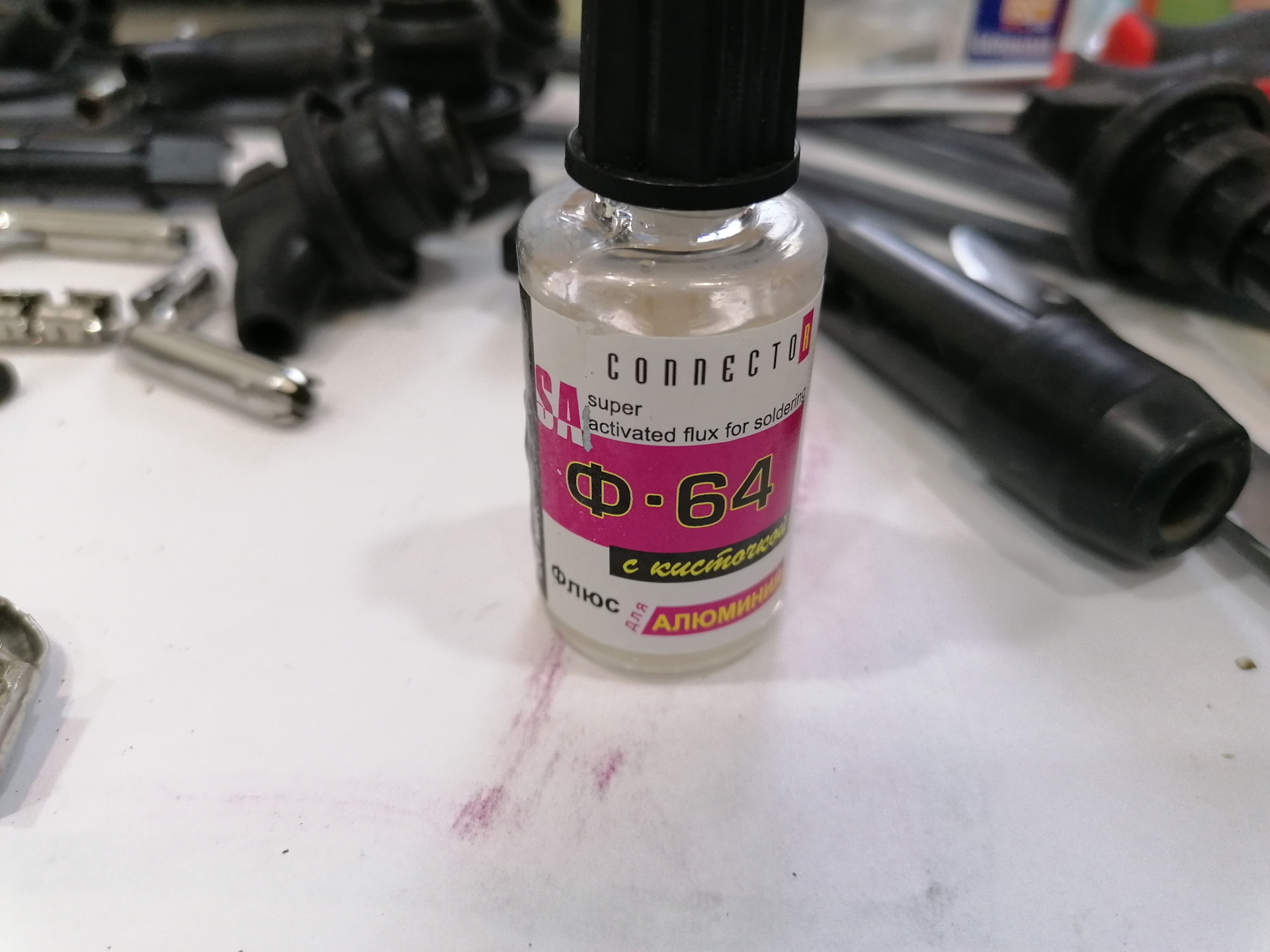 Как же припаять провод к металлическому наконечнику? Все просто оказывается! Нужен лишь флюс для алюминия "Ф-64", который стоит дешево и при помощи которого удастся все-таки "склеить" провод с наконечником!)