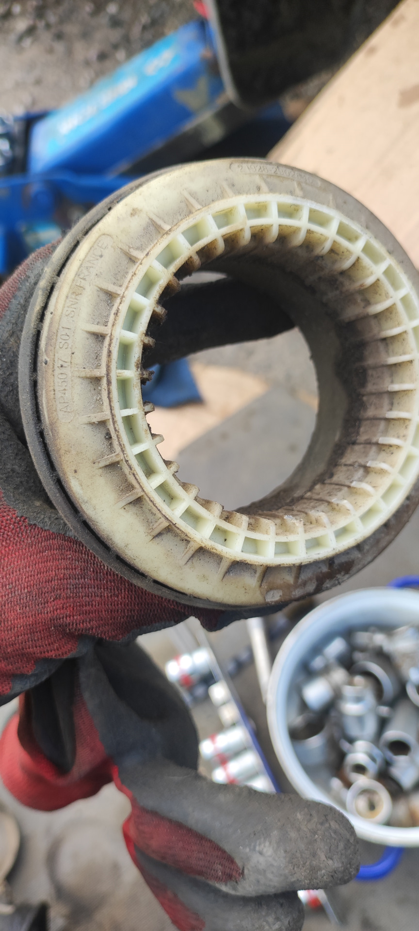 Подушка амортизатора ss20, отличается от заводской, тем что втулка в резине и едина с самой нижней подушкой, слева например, есть на стакане следы втулки о стакан