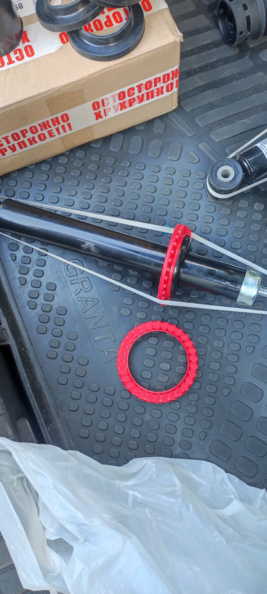 Резинка на чашку заднего амортизатора, купил потому как уверовал, в маркетинговые надписи на упаковке. Как указал производитель спасает от карозии чашку и пружину, улучшает управляемость и придаёт неповторимый стиль.