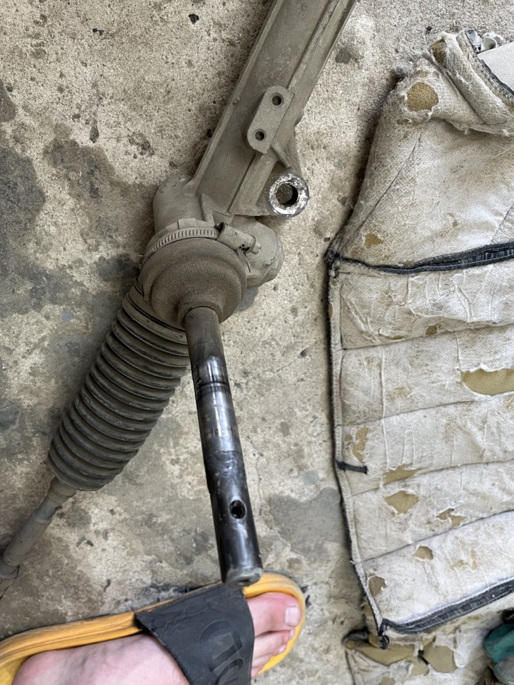 Далее… начал крутить-вертеть, при этом поднял стабилизатор вверх, он прокручивается в втулках резиновых, помогал отец, без него бы не справился, крутили рейку после того, как вышел шток с салона против часовой стрелки, а именно — он смотрел в сторону переднего бампера и тогда получилось вытащить в сборе рейку через водительскую сторону.