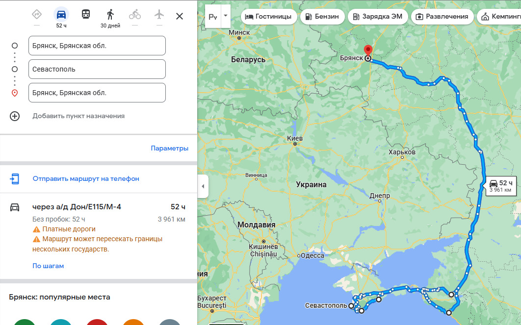 Маршрут путешествия Брянск-Ростов на Дону- Джубга-Витязево-Севастополь- Семеиз- Ялта- Судак — Ростов на Дону — Брянск.
