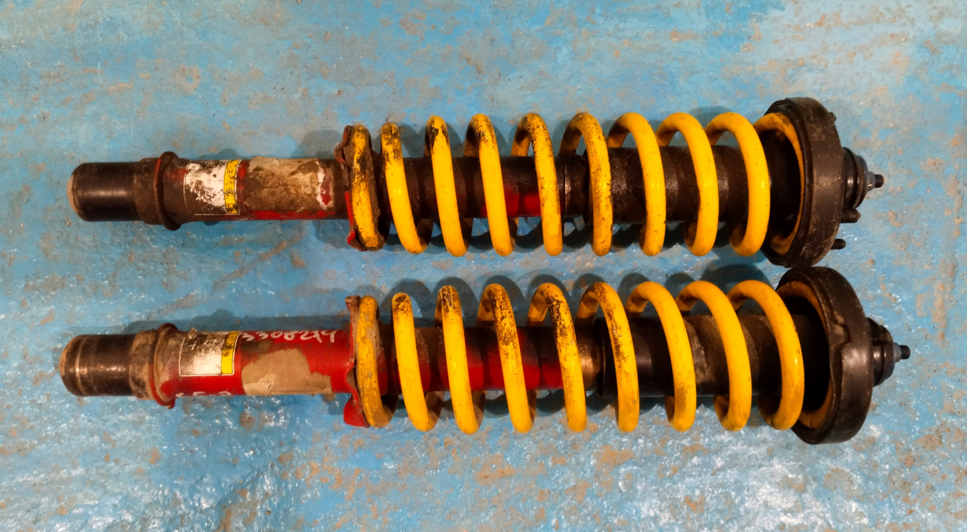 Подкрасил низ стоек и чашки в черный, зажал пружины, смазал резьбы на стойках…