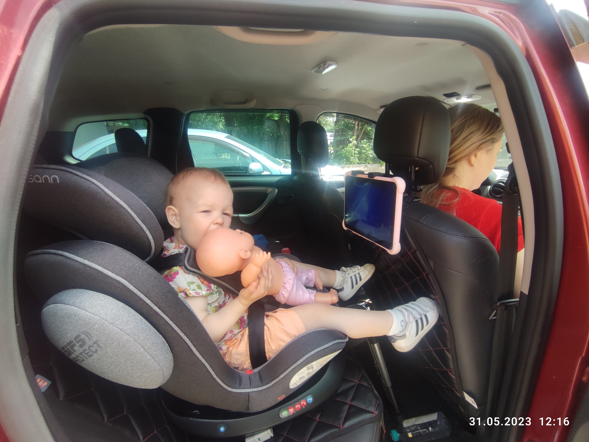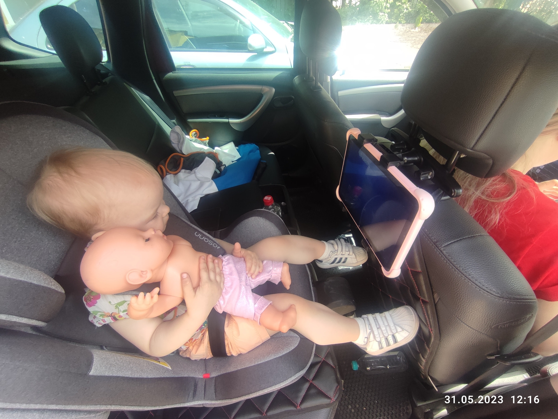 Ну конечно речь идёт исключительно про дорогу и нахождение ребёнка в автомобиле на время всего пути, в перерывах между сном. И то когда уже устанет сидеть и начнёт капризничать…чтобы на что-то отвлеклась… А так мы планируем передвигаться в основном ночью…)