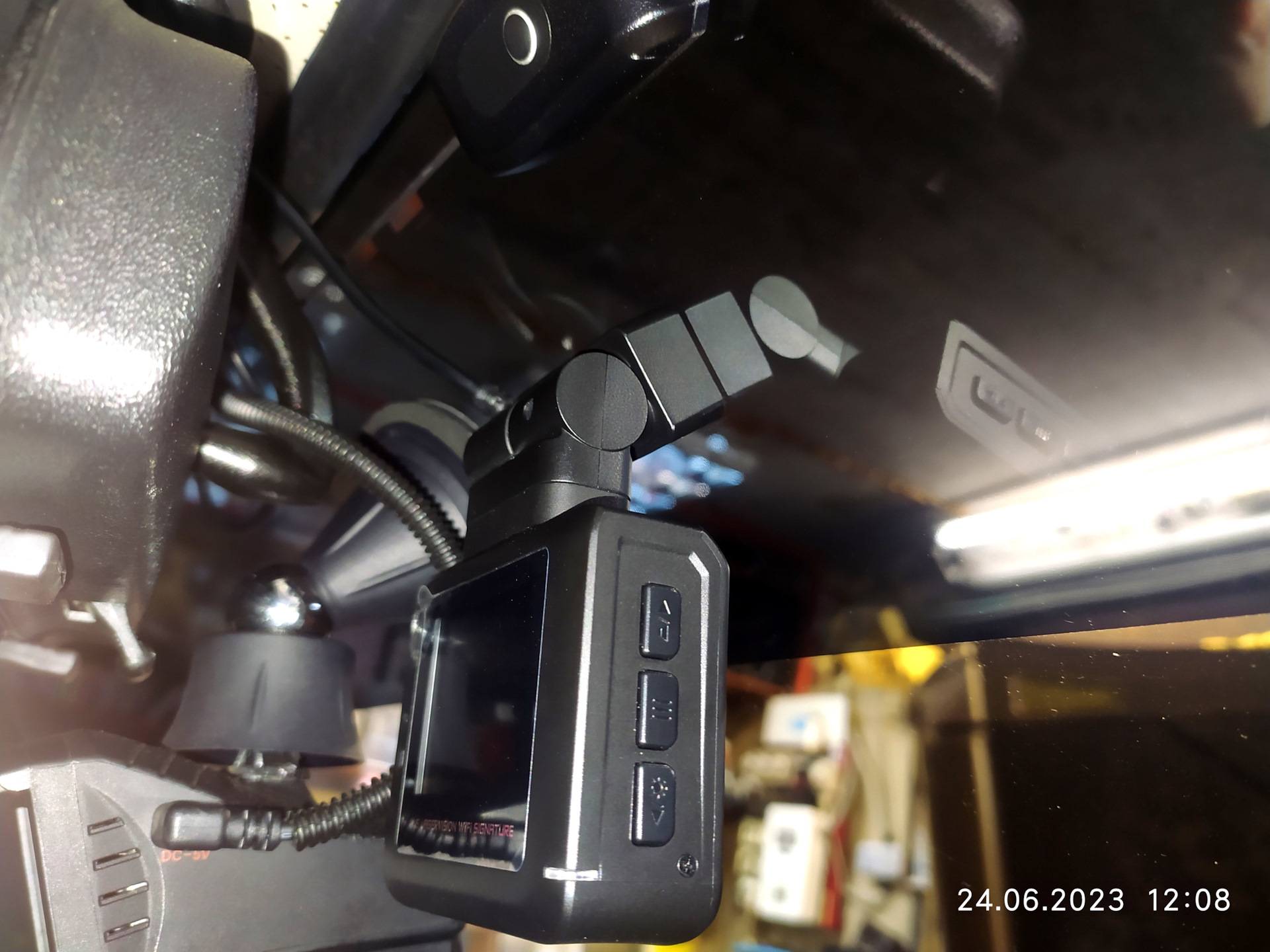 1. Прикидываем и выбираем место под крепление, учитывая условие чтобы не мешало обзору водителя и сторону с которой будем подводить кабель питания;