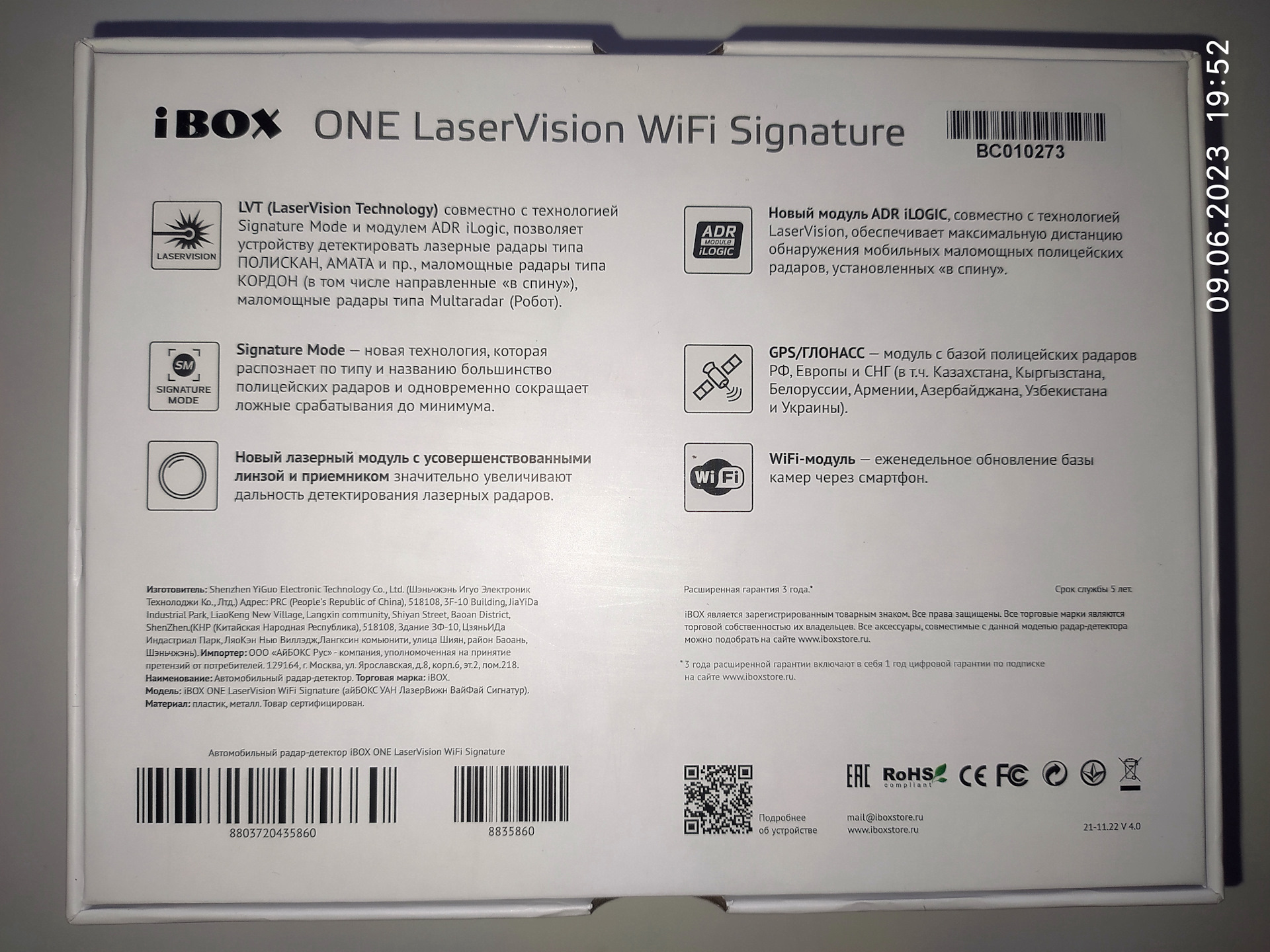 Свой выбор остановил на устройстве iBOX ONE LaserVision WiFi Signature приобретался на сайте производителя.