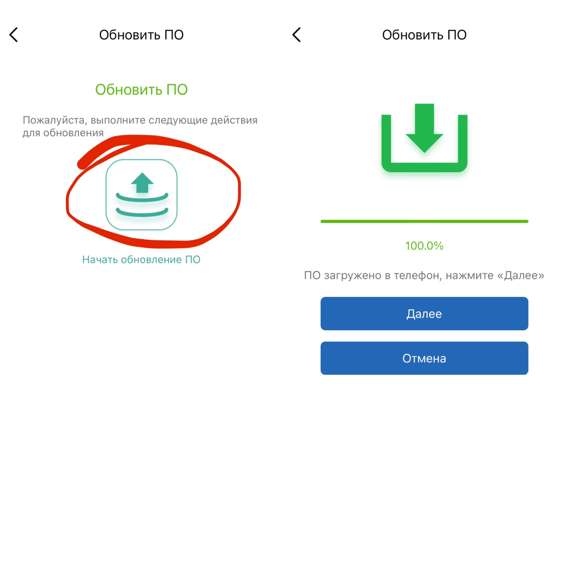 Скачай сначала файл с обновлением в приложение, а потом подключись и обнови, должно получиться)