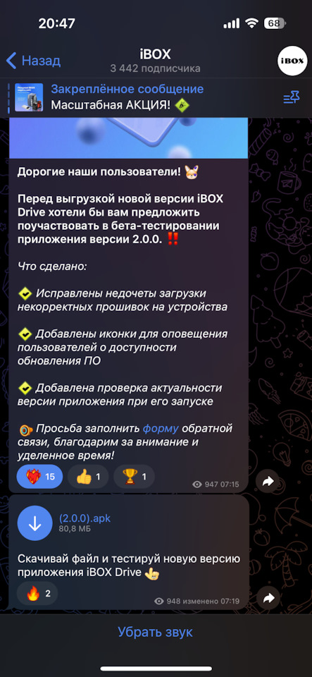 Вышло обновлённое приложение IBOX DRIVE, обновление работает, нас читают и принимают во внимание! О выходе новой версии приложени узнал благодаря своевременной обратной связи от производителя IBOX Rus здесь, на Drive2!